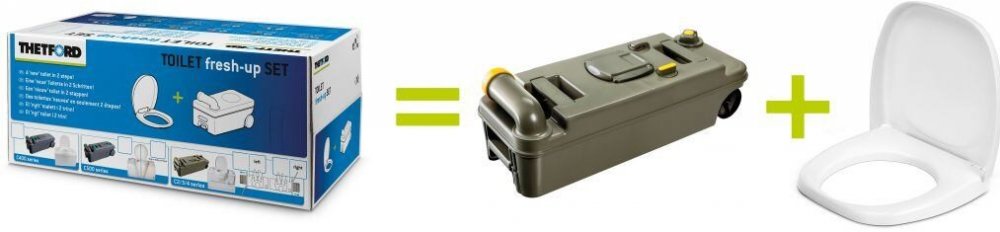 Sada nové odpadní kazety a prkénka toalety ThetfordObnovovací sada pro kazetové WC značky Thetford obsahuje odpadní nádrž doplněnou o záchodové prkénko s víkem. Potřebujete-li přídavnou nádrž na delší cestu nebo jen chcete z nějakého důvodu nahradit tu původní, tato sada je vhodným řešením.Pro modely C2/C3/C4 je důležité vybrat obnovovací sadu s vhodnou stranovou orientací odpadní kazety. U ostatních modelů stranová orientace nehraje roli, dá se v případě potřeby změnit svépomocí.Jak poznat, jestli potřebujete kazetu na pravou nebo levou stranu?Když si představíte, že sedíte na záchodě, tak podle toho, z jaké strany se kazeta vkládá do WC, potřebujete odpadní kazetu s orientací na tuto stranu.Upozornění: U obnovovací sady WC Thetford C220 je odpadní kazeta bez ventilace. Pokud sháníte kazetu s ventilací, najdete produkt v záložce příslušenství.Klíčové vlastnosti obnovovací sady pro kazetové wc značky Thetford:Obnovovací sada obsahuje odpadní nádrž se záchodovým prkénkem a víkem.Některé ze sad mají specifickou funkci.Parametry obnovovací sady pro kazetové wc značky Thetford:typ WCorientacerozměry baleníhmotnostC200–49,5 × 37,5 × 29,5 cm7,5 kgC220–49,5 × 37,5 × 29,5 cm7 kgC250/C260–49 × 37 × 29 cm6,3 kgC400–68 × 37,5 × 29,5 cm6,7 kgC500–68 × 38 × 29,5 cm7 kgC500 Hobby/Fendt–68 × 37,5 × 29,5 cm7 kgC2, C3, C4levá/pravá68 × 37,5 × 29,5 cm7,5 kg