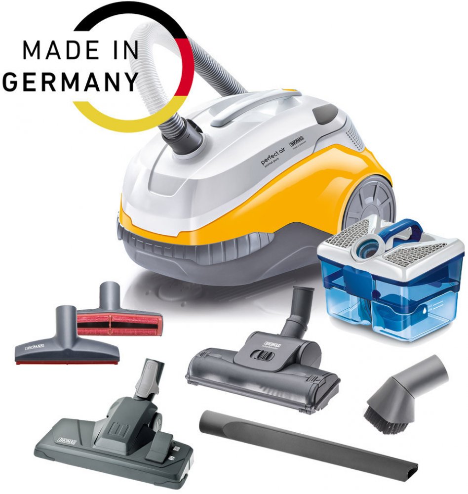 Thomas multifunkční 1.8 l 1.8 l teleskopické žluté vodní mokré, suché síťové HEPA mokré a suché úklidové práce 70 dB 1600 W 6.9 kg 8 m 280 W 11 m náročné (>4kg) neuvedeno zachytí 99.95% roztoče, pyl a alergeny hluboké koberce + pevné nečistoty speciální pro zvířata (turbokartáč) parkovací poloha kompletní sada: 5+ nástavců ovládání na rukojeti a automatické navíjení kabelu vysoká (vodní filtr)