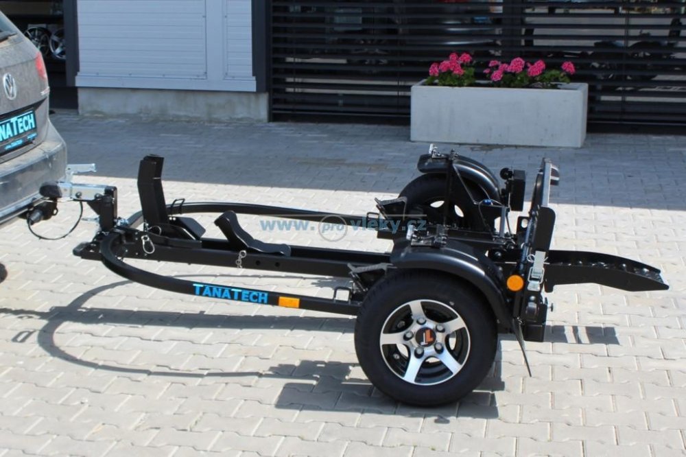 Novinka roku 2025 - Thomas Smart Biker. Smart proto, že přívěs využívá velmi chytré sklápění vedení pro motocykl pomocí pákového efektu .