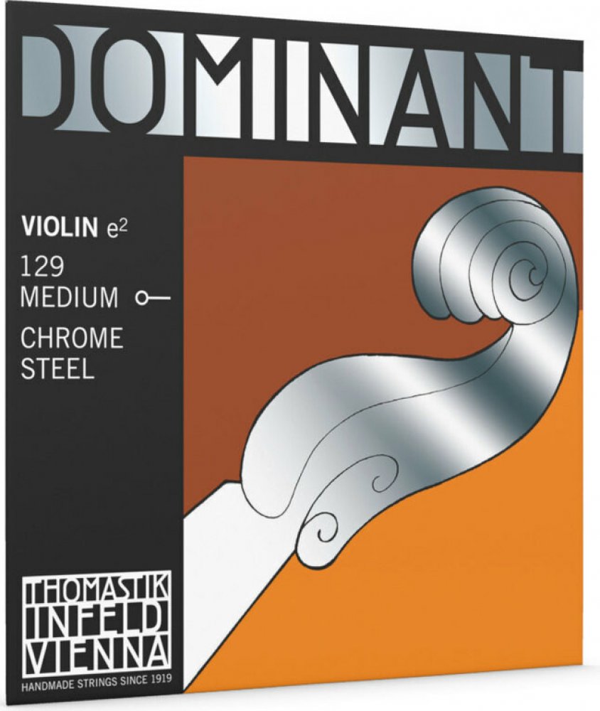 Thomastik DOMINANT (E) 129 - struna na housle Houslové struny Dominant jsou jedny z nejvyhledávanějších sad vůbec. Léty ověřená konstrukce s jádrem z mnohačetného syntetického lanka nabízí čistý, měkký tón bohatý na vyšší harmonické a stabilní ladění. Tuto sadu lze považovat za "referenční standard" a může být dobrým výchozím bodem při hledání nových zvukových možností strun vyráběných z moderních syntetických materiálů a jejich modifikací. Vl