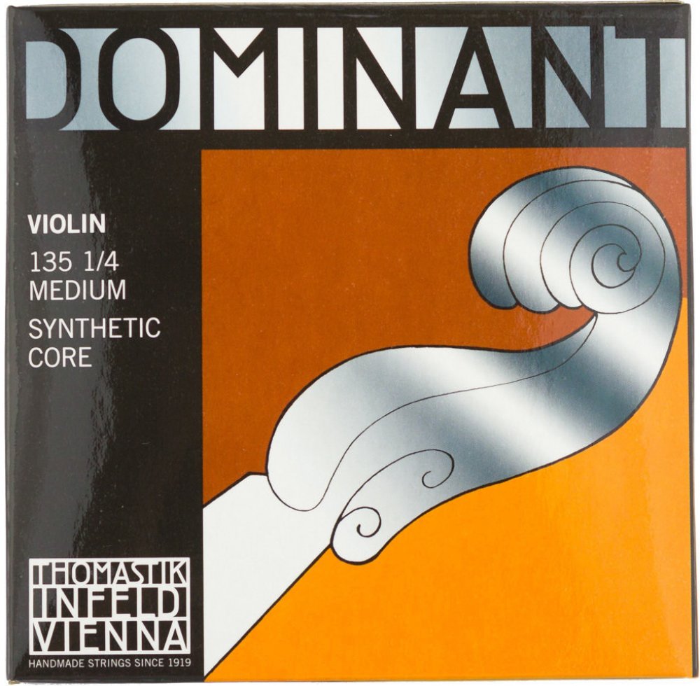 Houslové struny Dominant jsou jedny z nejvyhledávanějších sad vůbec. Lety ověřená konstrukce s jádrem z mnohačetného syntetického lanka nabízí čistí, měkký tón bohatý na vyšší harmonické a stabilní ladění. Tuto sadu lze považovat za "referenční standart" a může být dobrým výchozím bodem při hledání nových zvukových možností strun vyráběných z moderních syntetických materiálů a jejich modifikací.Sada obsahuje jednotlivé struny:E - hliníkové opředeníA - hliníkové opředení D - hliníkové opředení G - stříbrné opředení