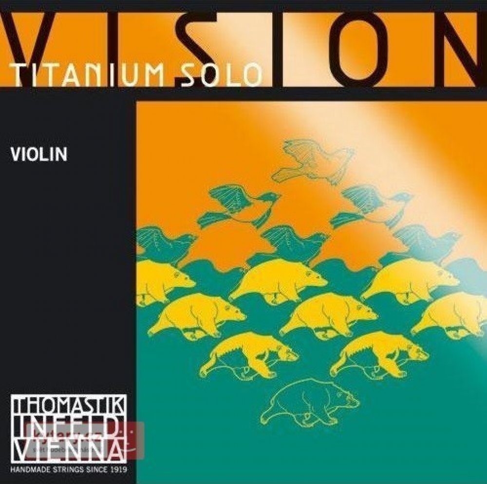 Houslové struny THOMASTIK INFELD VISION TITANIUM SOLO Struny Vision nabízí hudebníkům zvuk, který je čistý, otevřený a velmi jasný. Využívají syntetického jádra, díky kterému se na ně velmi příjemně hraje, mají dlouhou životnost, vysokou stabilitu ladění a barevný Ladění. Pro ovinutí je použito čisté stříbro. Kuličkové zakončení je vyrobenu z titanu.