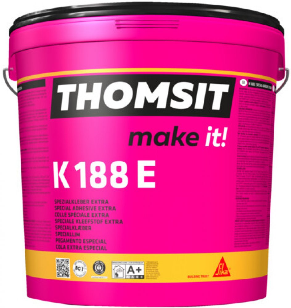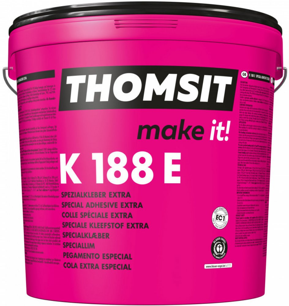 Speciální lepidlo K 188 E Extra se vyznačuje vysokou počáteční lepivostí a pevně přilepí materiál k podlaze – dokonce i na okrajích. Jeho dlouhá, pro uživatele příznivá doba odvětrání poskytuje podlahářům podlah dostatek času pro práci na složitých detailech. Díky všem těmto vlastnostem pak získalo lepidlo K 188 E, v rámci průzkumu prováděného v roce 2010 mezi 1 500 podlahářskými firmami, titul „Nejlepší lepidlo roku“. Kvůli velmi nízkému obsahu emisí, pak navíc získalo certifikaci EC 1.