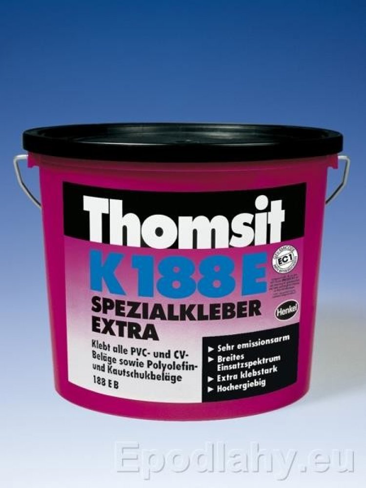 K 188 E zajišťuje vynikající smáčení a mimořádně silnou přilnavost i v případě materiálů, jejichž lepení a manipulace s nimi je obtížná, jako například polyolefiny a kaučuk. K 188 E je vhodné i k lepení nepropustných krytin na nesavé podklady, jako např. PVC a CV na PVC krytiny. Ideální jako kontaktní lepidlo pro lepení schodišťových profilů z kaučuku a k lepení na stěny. Současně je při používání velmi hospodárné a lze jej aplikovat třemi způsoby: lepením za mokra, adhezním lepením a kontaktním lepením - v závislosti na podkladu.