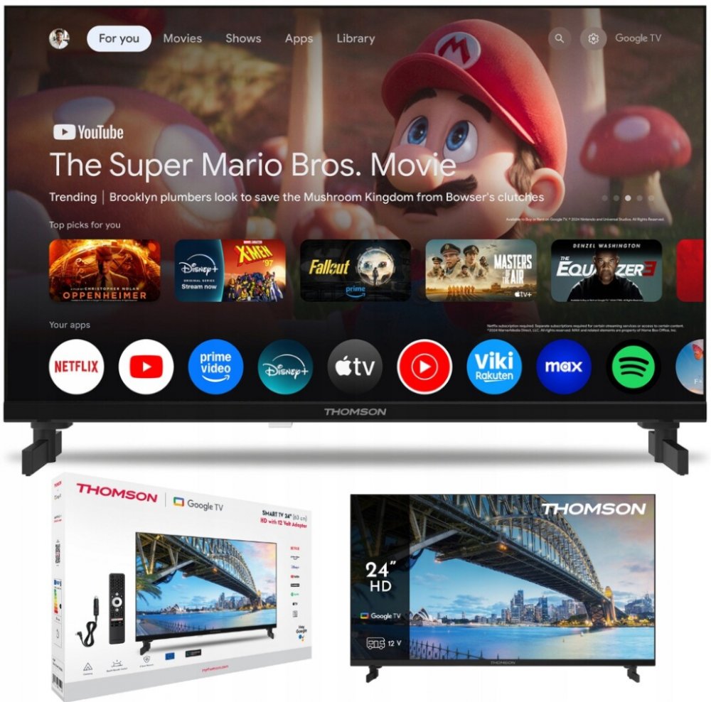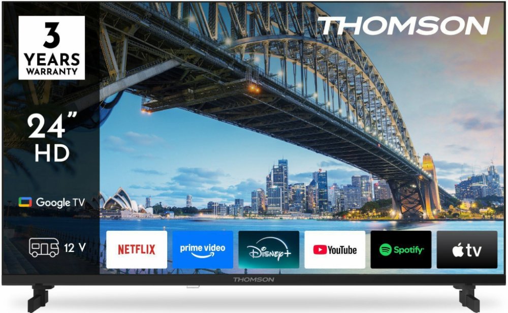 Thomson 61 cm LED 24 palců Google TV Šedá Dálkový ovladač 1366 x 768 60 3 2 2.4 kg 100 x 100 E 2242213 HD streamování Vyžaduje externí systém