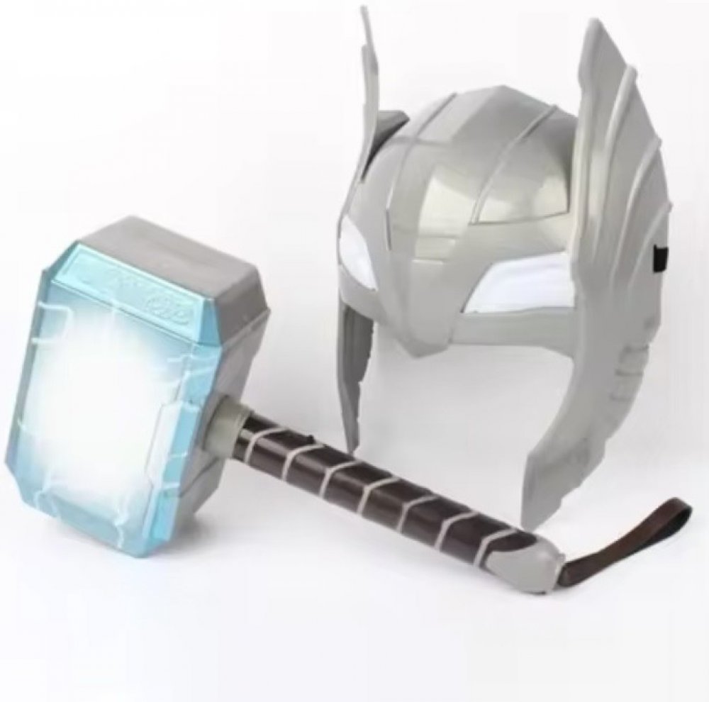 Toto hračkářské Thorovo kladivo a maska jsou ideální pro děti, které jdou na karneval, Halloween, masopust, tematické oslavy nebo pro každodenní hry na superhrdiny.