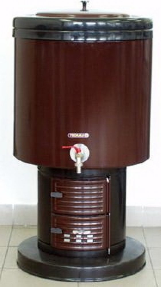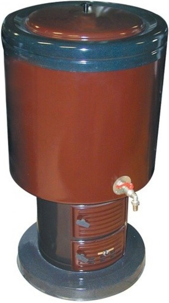 Smaltovaný ohřívač vody se zásobníkem o objemu 70 litrů je konstruovaný na spalování dřeva nebo hnědého uhlí. Určeno pro domácnosti.