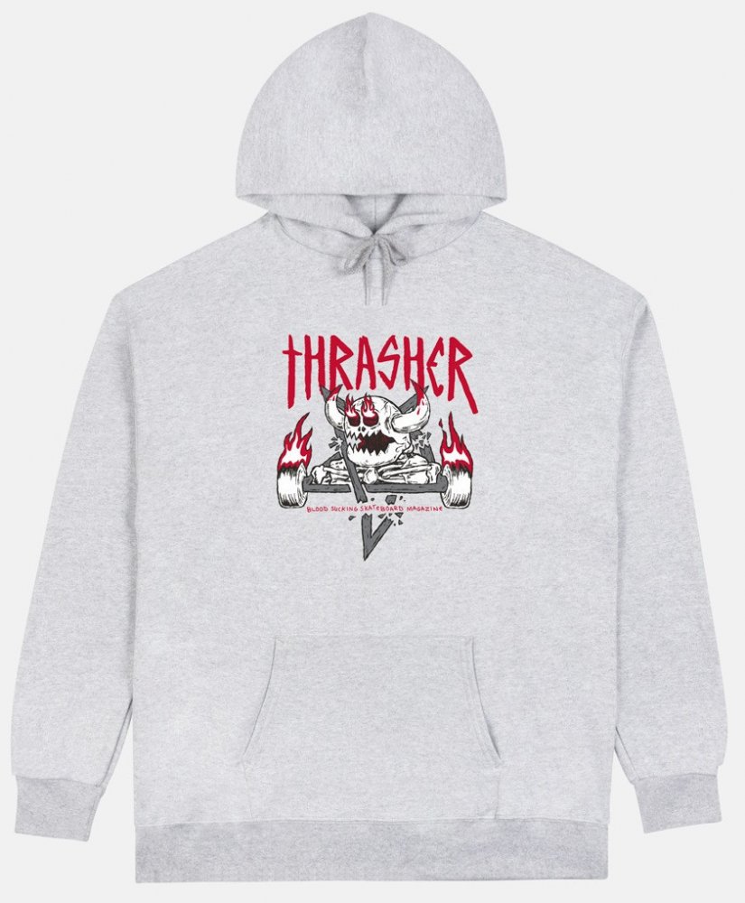 pánská mikina THRASHER (TOY MACHINE) MONSTER GRAM HOOD Ash Grey