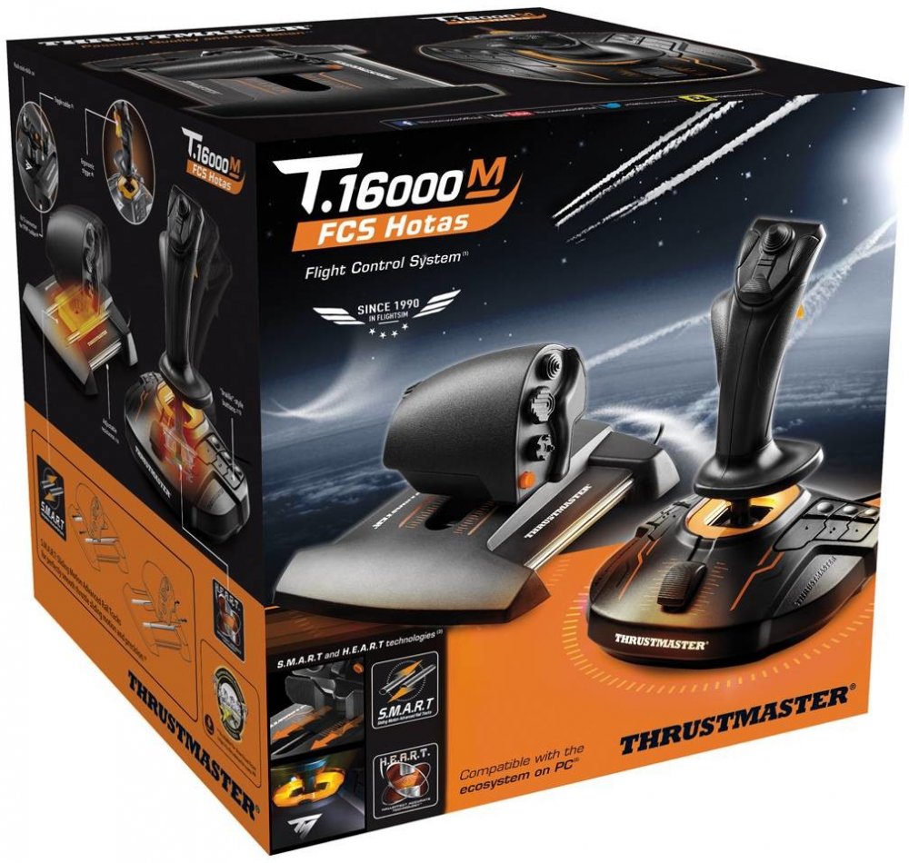 Thrustmaster věnovat 25 let zkušeností ve vývoji leteckých simulátorů aby pokryl rostoucí požadavky na obecné letecké simulátory a zejména po vesmírné letecké simulátory pro joysticky střední cenové kategorie HOTAS. T.16000M FCS HOTAS je určen pro pokročilé piloty, kteří hledají komplexní realistické ovládání jako alternativu k použití myši a klávesnice. T.16000M FCS (Flight Control System) obsahuje leteckou řídící páku a TWCS (Thrustmaster Weapon Control System). T.16000M FCS HOTAS je kompatibilní s PC přes USB ve Windows 10, 8, 7 a Vista (32-bitové a 64-bitové).