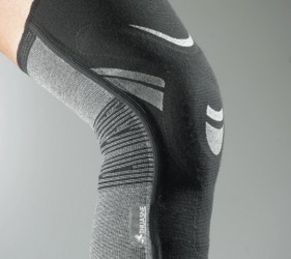 kolenní ortéza ze speciální prodyšné tkaniny a z 3D elastického úpletu vzadu
