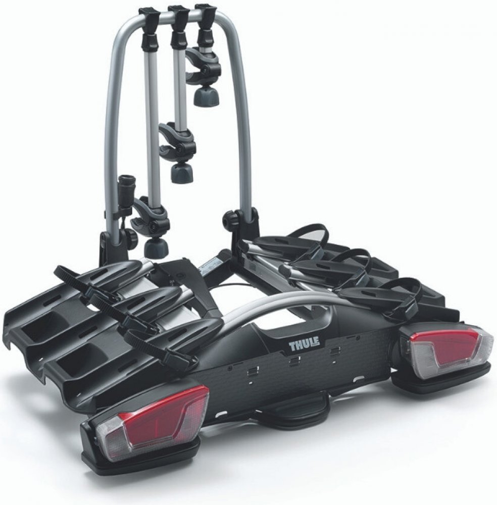 Malý a lehký držák Thule® lze sklopit praktickým nožním pedálem a tím získat snadný přístup do zavazadlového prostoru, i když jsou na držáku upevněna jízdní kola.