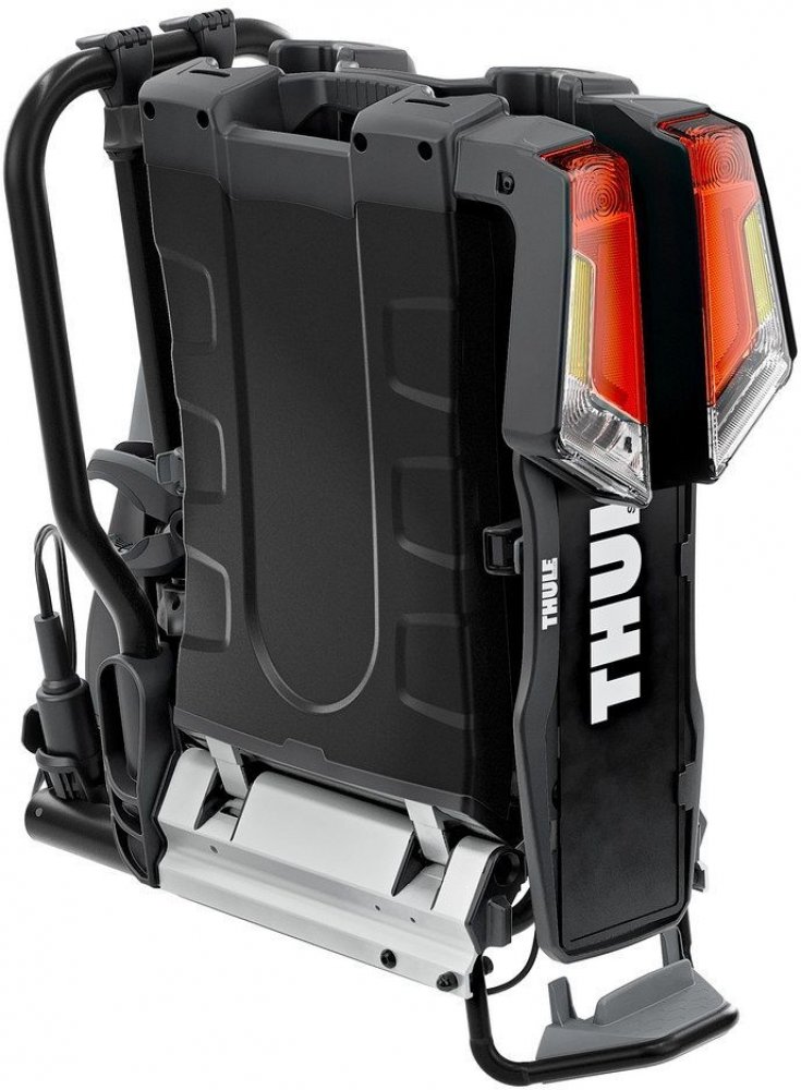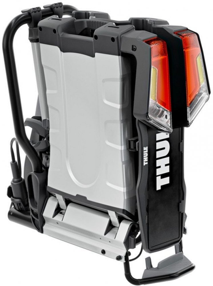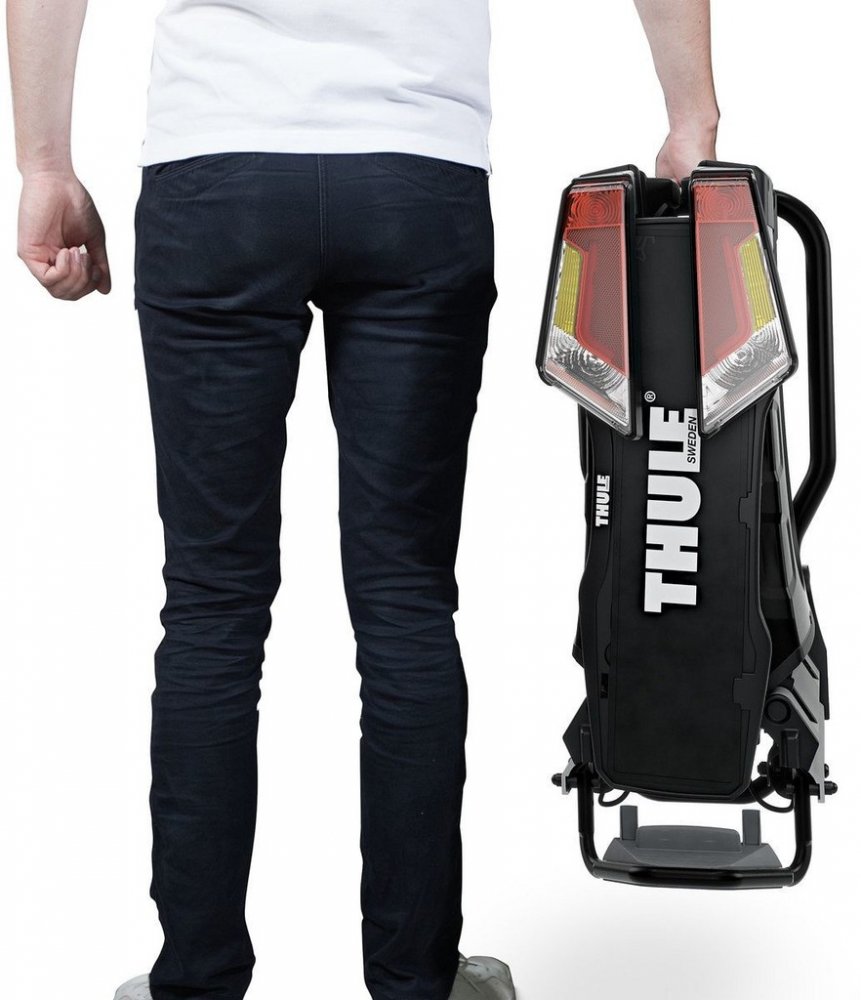Kompaktní nosič s rukojetí, který se dá snadno namontovat na tažné zařízení, pohodlně se přenáší a dá se složit, aby nezabíral moc místa, když ho zrovna nepoužíváte. Uveze jakkoli velké kolo a vejdou se na něj až dvě naráz. Systém Thule AcuTight vám cvaknutím oznámí, že je kolo správně usazeno. Potom ho ještě upevníte přezkami a pro větší bezpečí zamknete jak kolo k nosiči, tak nosič k autu a můžete vyrazit. Díky možnosti odklápění celého nosiče se do kufru dostanete kdykoli budete potřebovat.