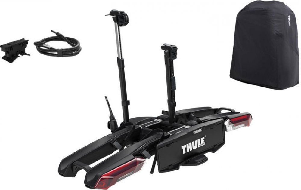 Thule Epos 978 - universální nosič 2 jízdních kol Jedinečná technologie uchycení jízdních kol zajišťuje universální použití - Thule Epos je vybaven teleskopickým ramenem s otočným držákem. Převážet můžete silniční, horská i elektrokolola. Vzdálenost mezi jízdními koly je 25 cm a nosnost na jedno kolo je 30 kg, takže se nemusíte bát přepravy těžkých elektrokol. Není problém uchytit jízdní kolo s ro...