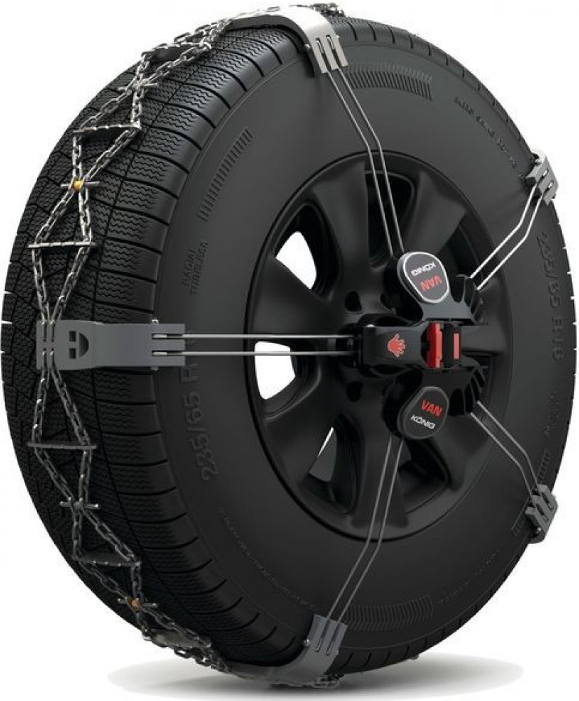 König K-Summit VAN jsou nejexklusivnější rychloupínací sněhové řetězy na trhu! Fixační páka k ráfku kola s ergonomickým designem: dotažení jednou rukou!
