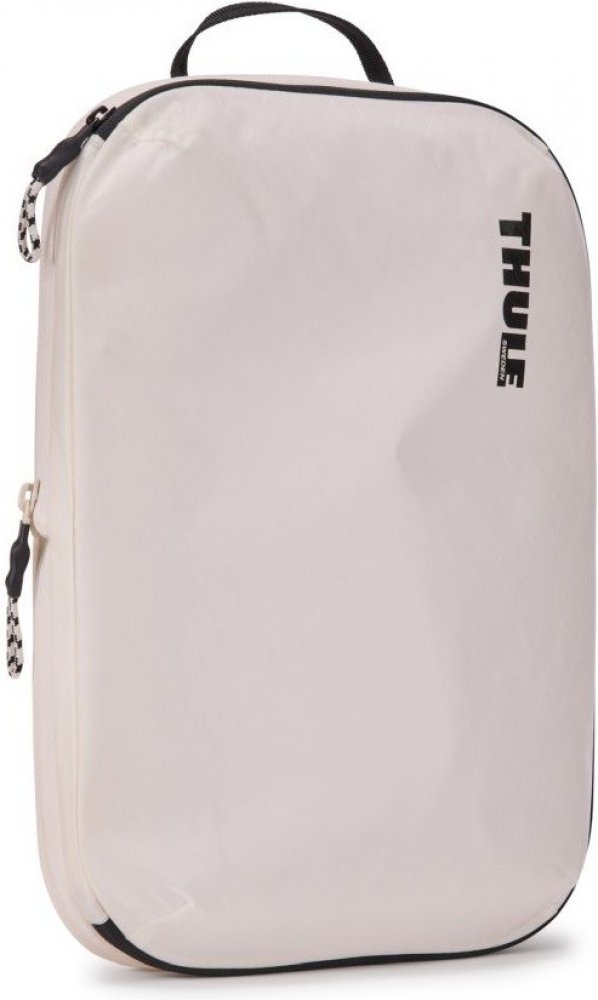 poloprůsvitný bílý kompresní široce rozevíratelný organizér 12.5l s YKK zipy a rukojetí na přenášení pro přehledné uspořádání věcí, který lze rozložit a stlačit pro získání maximálního úložného prostoru