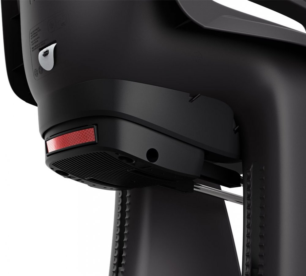 - Sedačka se na kolo upevní během několika sekund a stejně rychle sejme díky univerzálnímu rychloupínacímu držáku. Je vhodná pro většinu rámů kol (kulaté rámy o průměru 28–40 mm a oválné rámy s profilem o velikosti max. 40 x 55 mm)