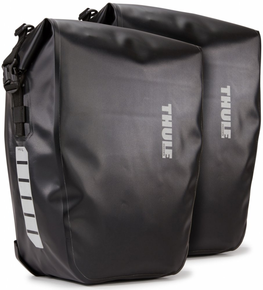 Thule Shield Pannier 25 l, Batohy, tašky a zavazadla. Sada dvou postranních brašen Thule Shield 25L představuje ideální volbu pro všechny cyklisty. Tyto brašny se snadno připevní na jakýkoliv nosič kol o průměru trubek 8–16 mm bez nutnosti použití adaptérů. Po instalaci je jejich nasazení i sejmutí otázkou několika sekund, což oceníte zejména při častém zastavování nebo přenášení výbavy.