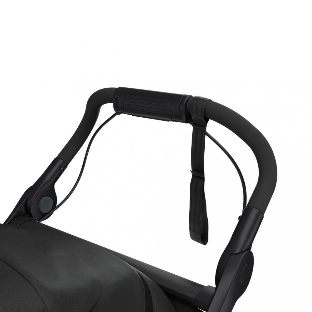 Výška madla je snadno nastavitelná, rychle se přizpůsobí každému, kdo se s kočárkem vydá na cestu. Madlo je vybaveno ruční brzdou.