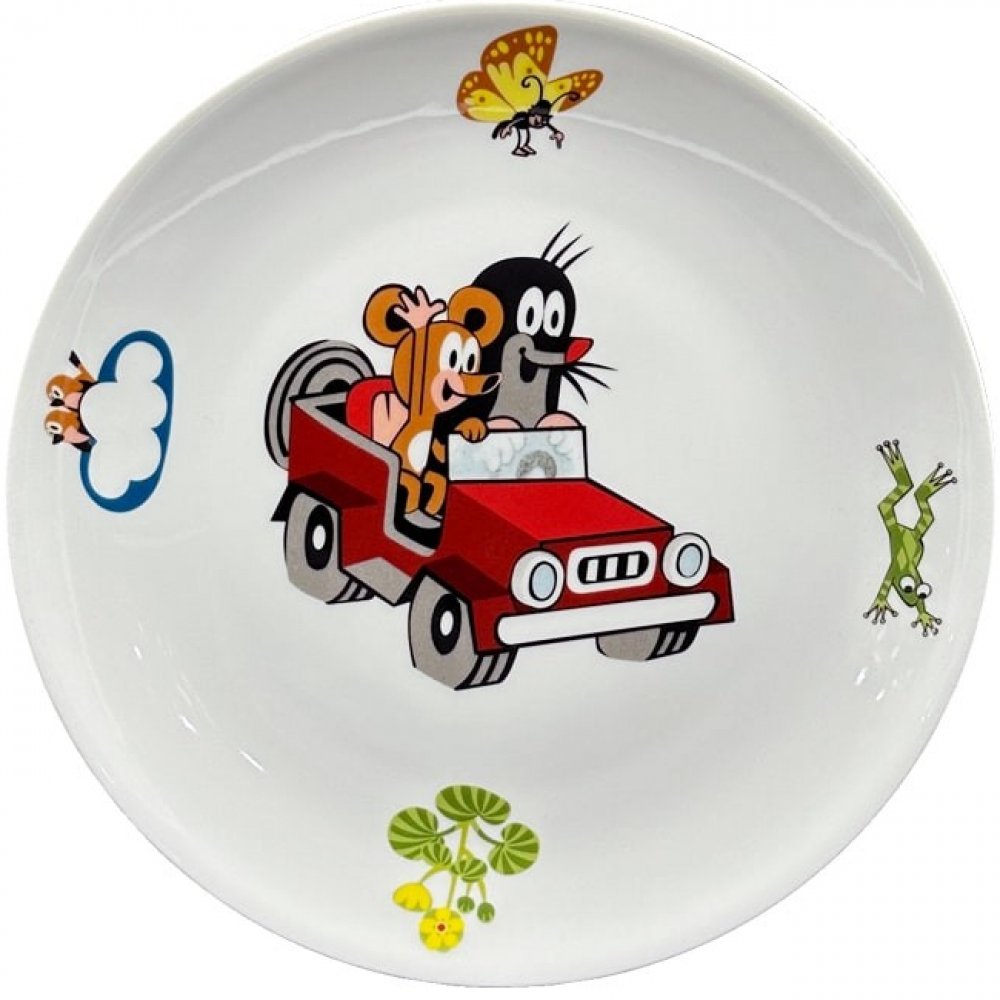 Thun 1794 Dětský porcelánový talíř hluboký Krtek v autíčku 200 mm