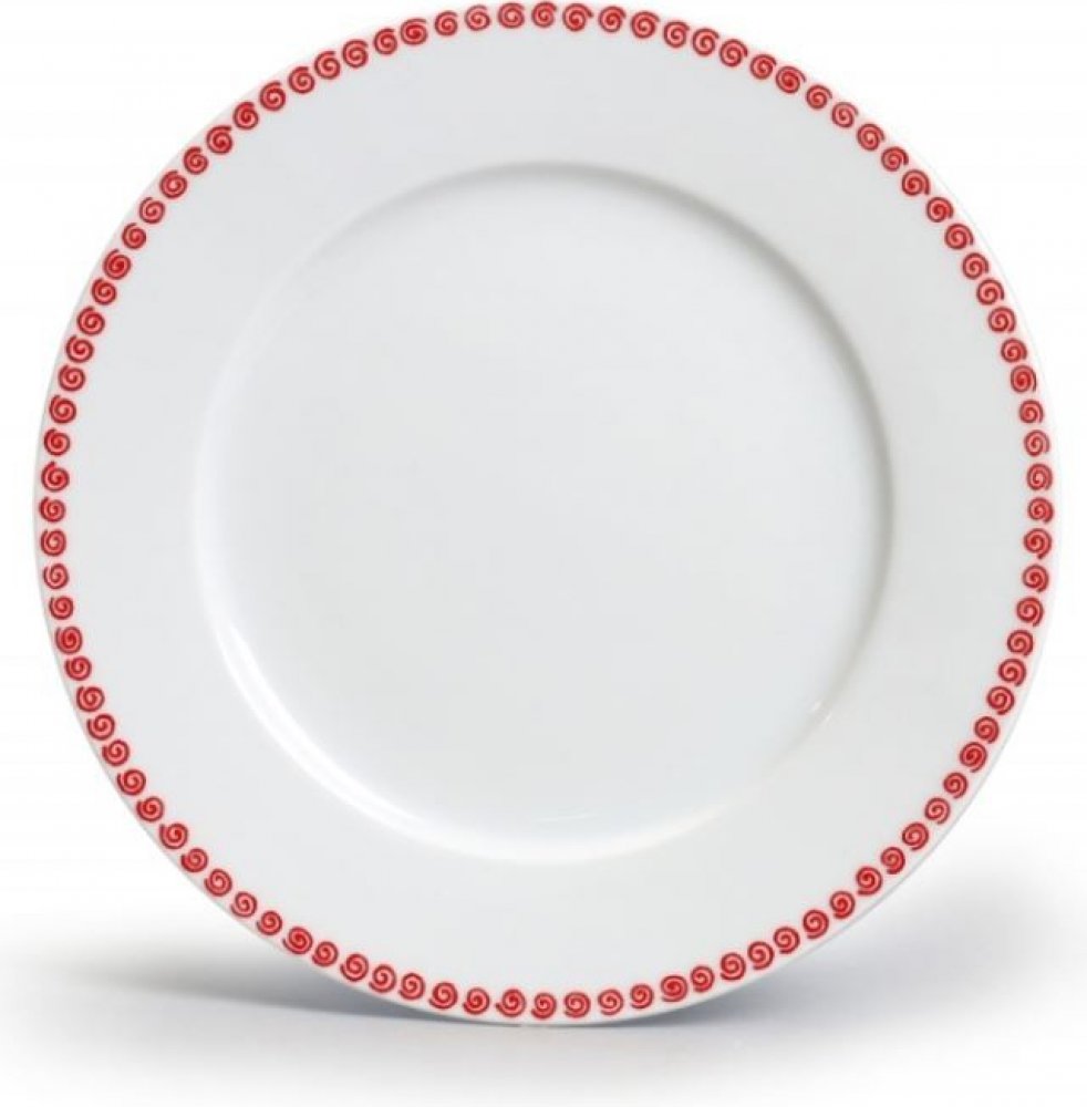 Dezertní porcelánový talíř Odense v dánském stylu. Dekor je tvořen drobnými červenými ulitkami po okraji talířů.