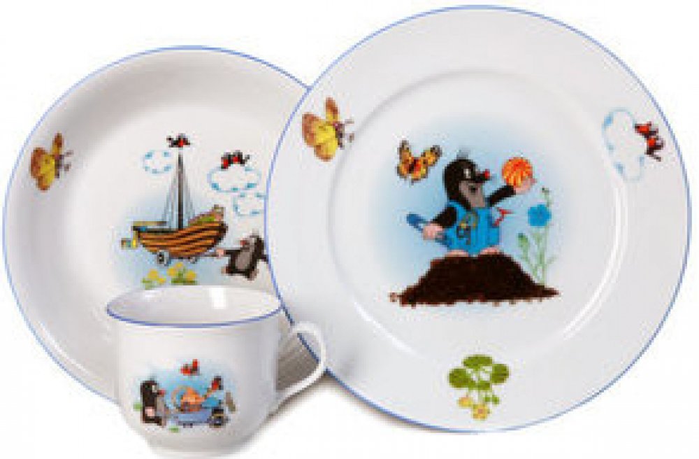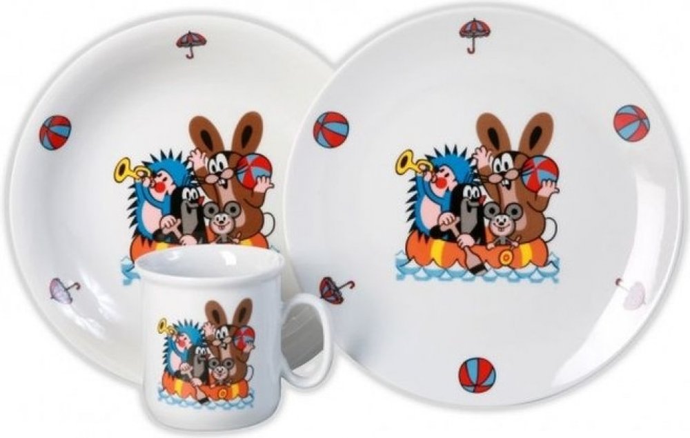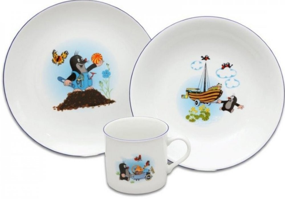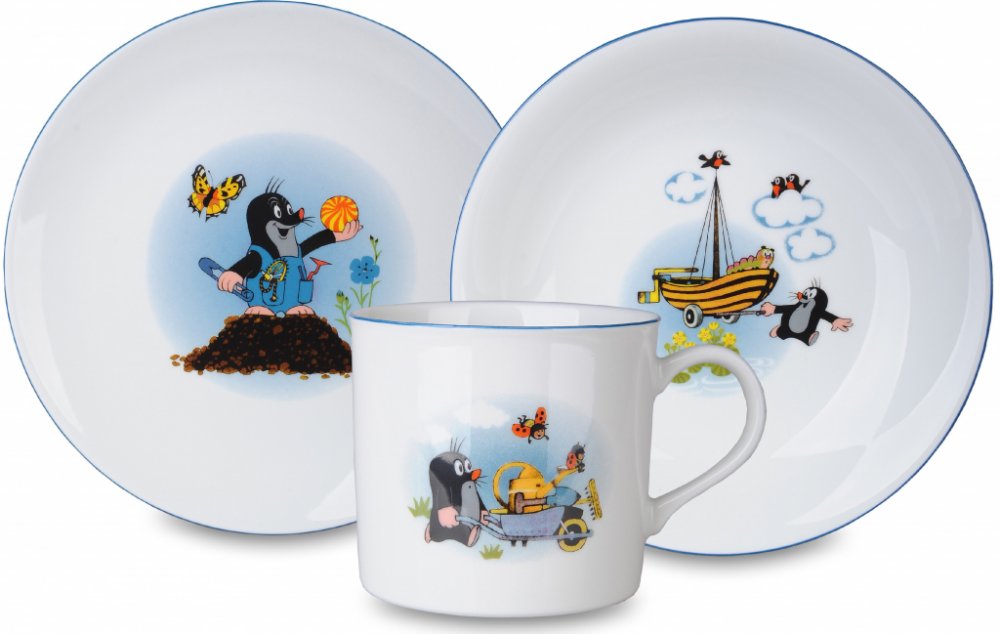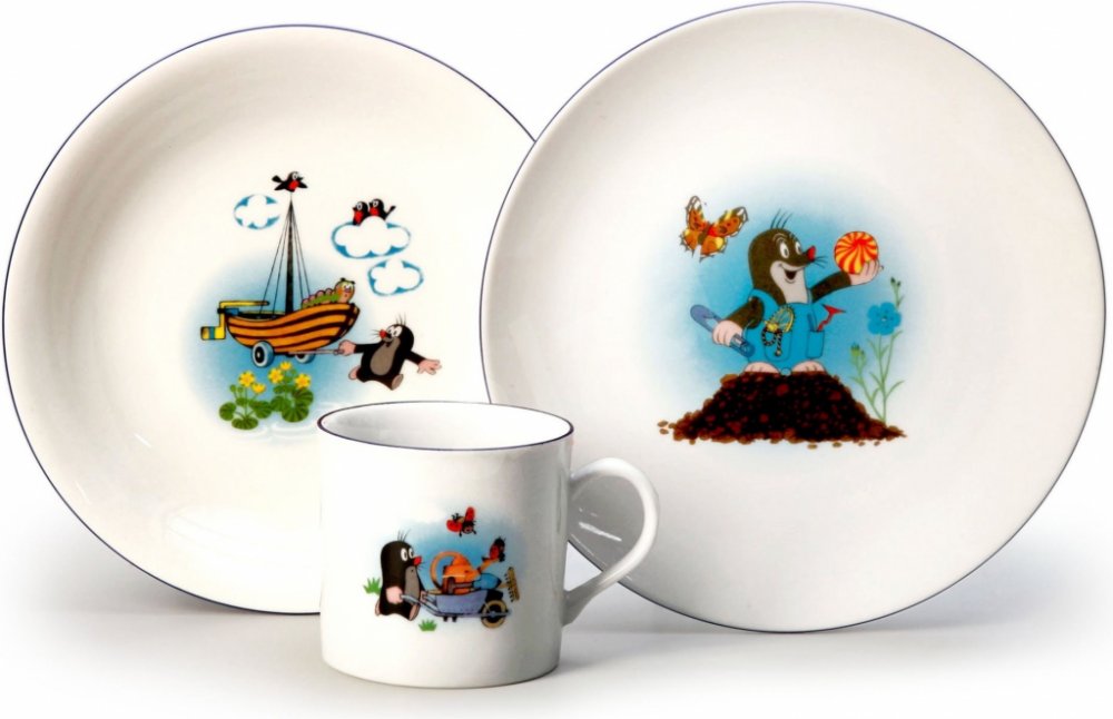 Dětský porcelánový set s motivem KRTEČKA obsahuje hrnek a 2 talíře. Každý produkt je zdravotně nezávadný a certifikovaný. Český porcelán. Vhodné do mikrovlnné trouby i do myčky nádobí.