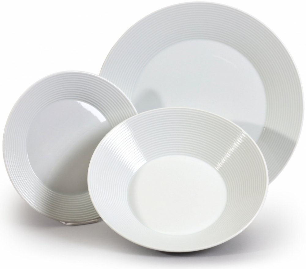 Talířová souprava z moderní a nadčasové porcelánové kolekce Lea bílá bez dekoru, od prvotřídní domácí značky Thun 1794. Tato souprava vyniká osobitým tvarem, talíře mají navíc rovné okraje (prapory), které jsou reliéfně zdobené jemnými proužky v porcelánu. Vyrobeno z vysoce kvalitního bílého porcelánu s vysokým leskem, který se od zahraniční konkurence odlišuje nižší váhou, kvalitou a precizním zpracováním. Vyrábí Thun 1794 a.s. Největší výrobce českého porcelánu se sídlem v Nové Roli u Karlových Varů. Porcelán je vhodný do mikrovlnné trouby i myčky nádobí.