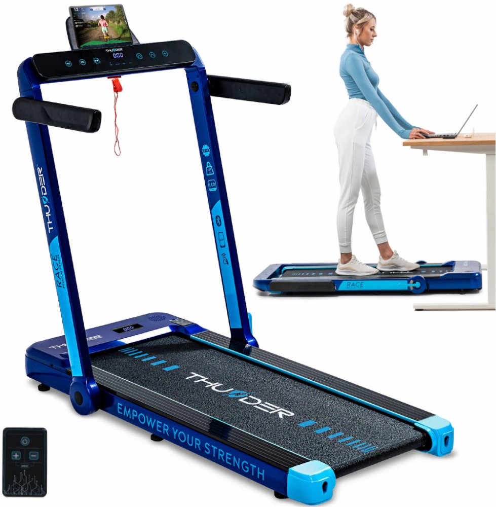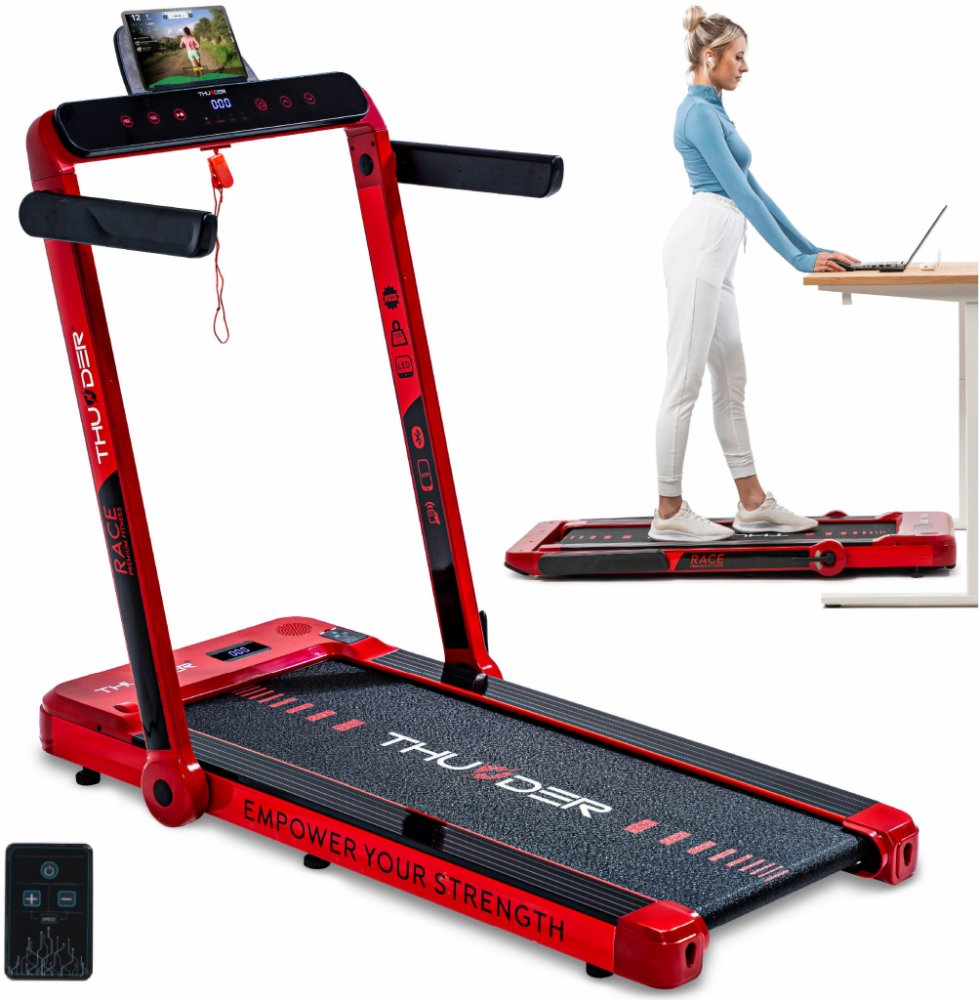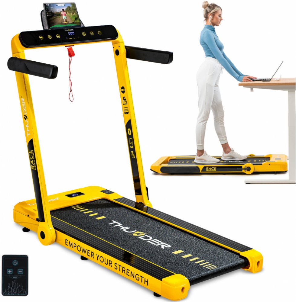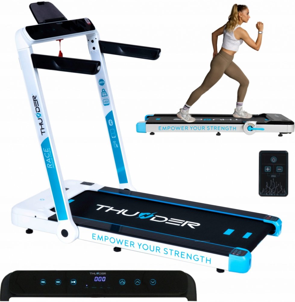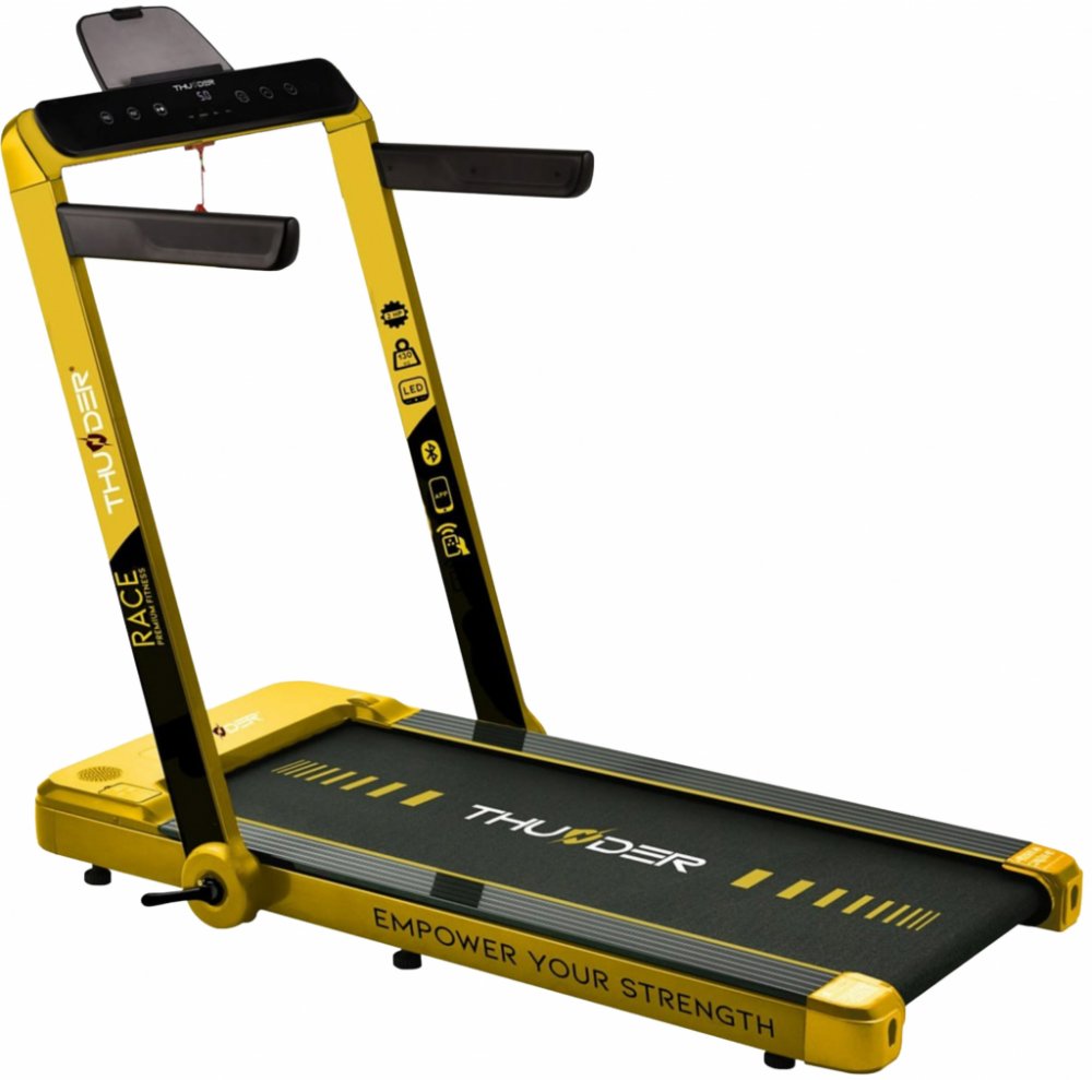 Toužíte po těle a kondici, na které budete pyšní? Objevte běžecký pás THUNDER® RACE-GOLD od osobního trenéra přímo u vás doma. Díky chytrým aplikacím a personalizovaným tréninkům budete moci neustále překonávat sami sebe a sledovat, jak se váš pokrok stává skutečností. Spojte pohodlí domova se skutečnými výsledky a objevte motivaci, která vás bude nutit k novým výkonům.