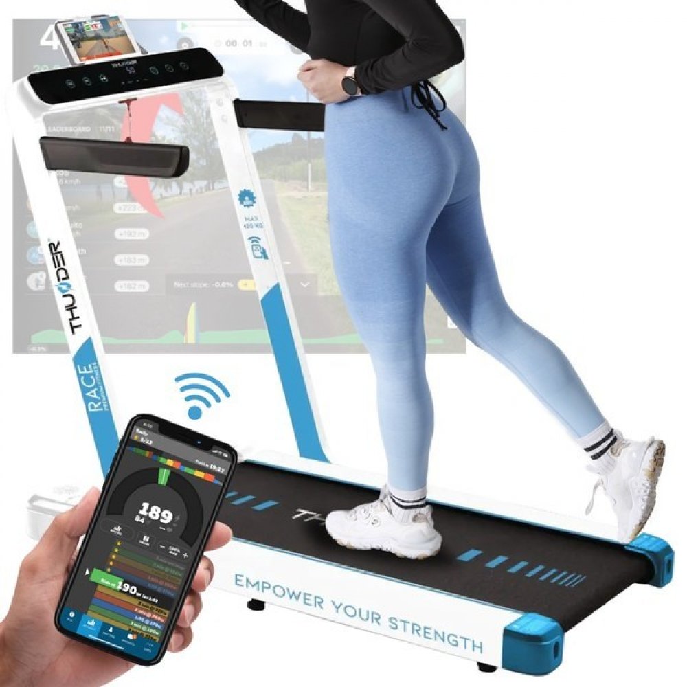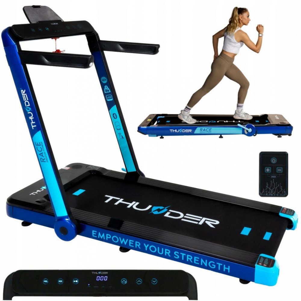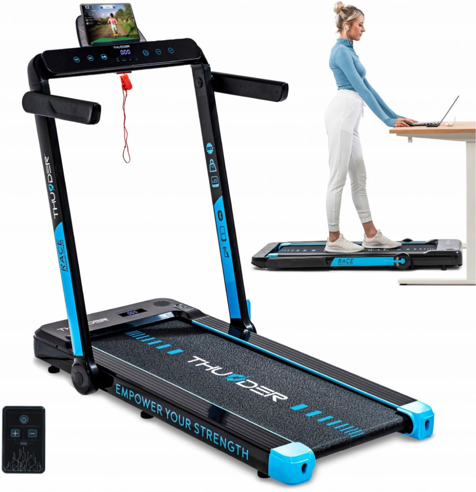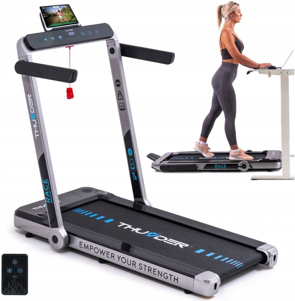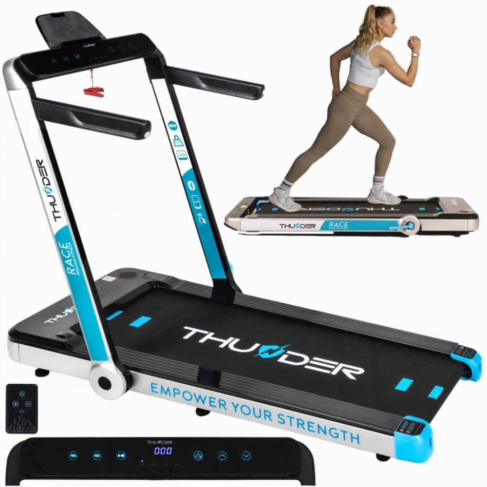 Toužíte po těle a kondici, na které budete pyšní? Objevte běžecký pás THUNDER® RACE-GOLD od osobního trenéra přímo u vás doma. Díky chytrým aplikacím a personalizovaným tréninkům budete moci neustále překonávat sami sebe a sledovat, jak se váš pokrok stává skutečností. Spojte pohodlí domova se skutečnými výsledky a objevte motivaci, která vás bude nutit k novým výkonům.