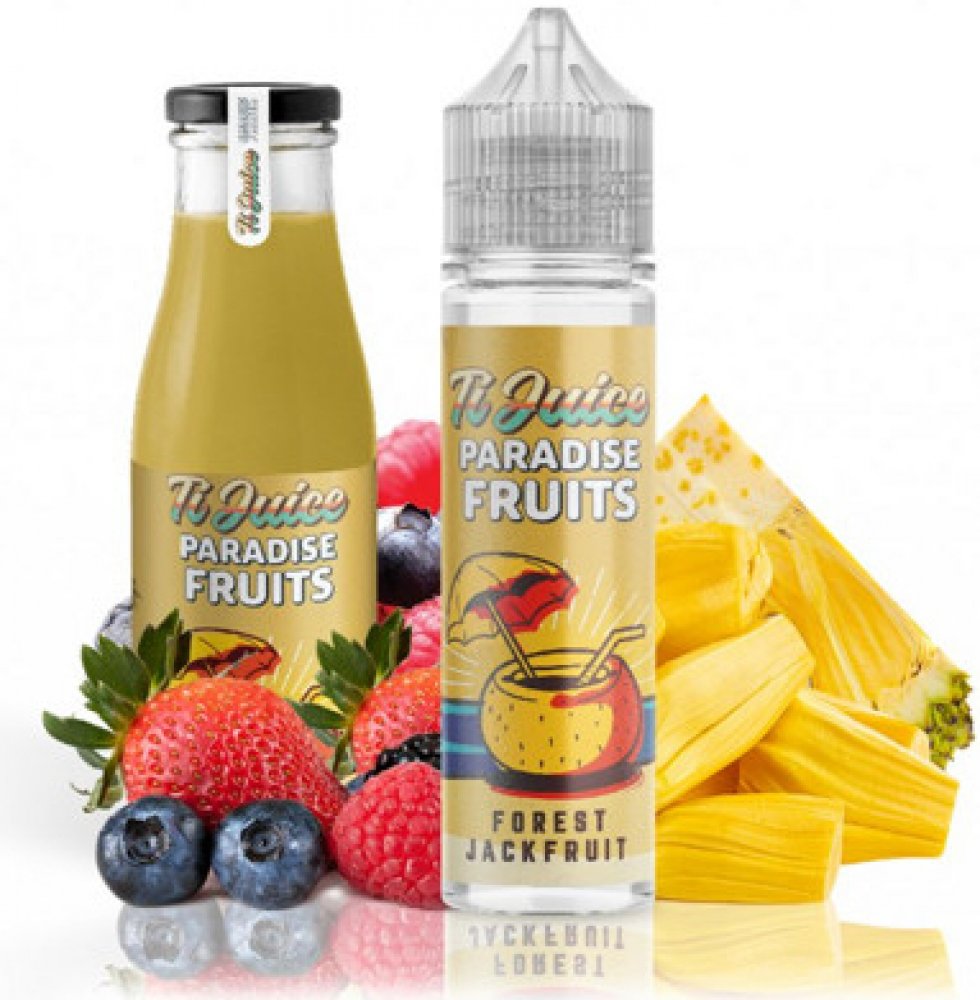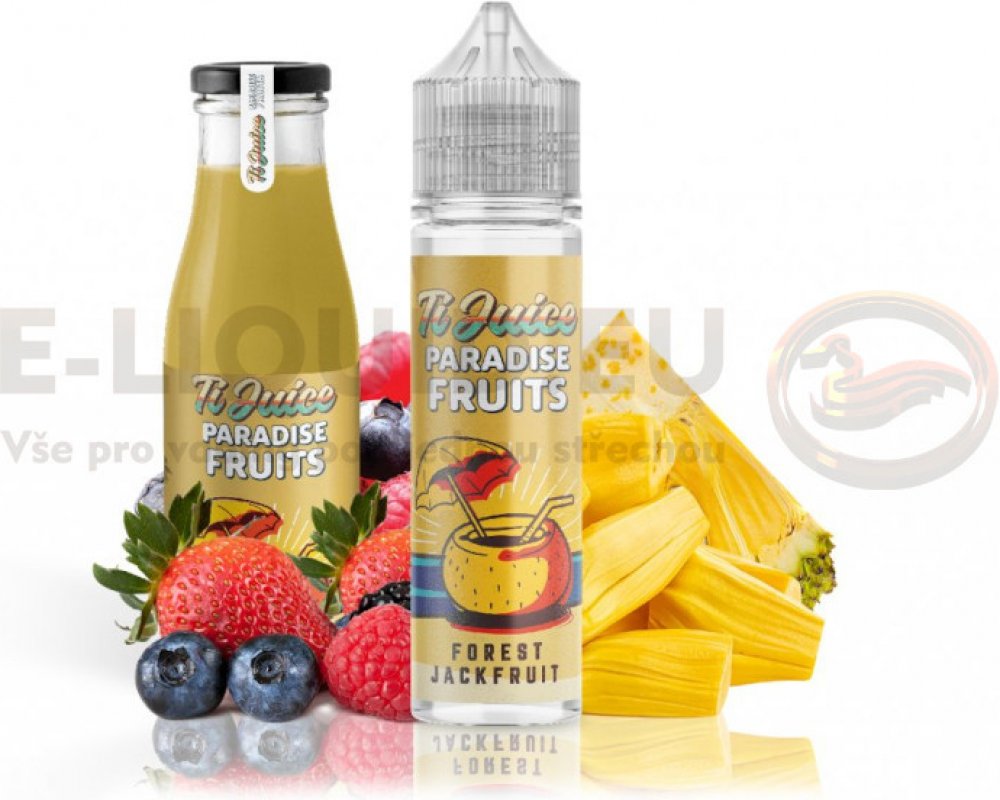 Brilantní propojení exotiky a tuzemského ovoce na vás čeká v lahodném ovocném mixu Forest Jackfruit. Při potahu ucítíte výraznou chuť čerstvě nasbíraných bobulovitých lesních plodů, která se prolíná s osvěžující chutí exotického jackfruitu. Příchuti potom nechybí absolutně nic, najdete v ní svěžest, sladkost, šťavnatost i nakyslost, naprosto harmonický ovocný celek. Ideální letní ovocné kombinace se ukrývají v sérii Paradise Fruits. Čeká na vás řada lahodných ovocných směsí exoticky laděného charakteru s neuvěřitelně originálními kombinacemi ovoce. Celé sérii nechybí šťavnatost, sladkost, ani svěžest. Takovéhle ovocné kombinace zaručeně jinde nenajdete, jsou geniální.Výrobce TI Juice nabízí velké množství různorodých sérií, které se zaměřují jak na milovníky ovoce, tak také na příznivce dezertů, nebo tabáků. Všechny příchutě tohoto výrobce jsou míchány z těch nejkvalitnějších a nejchutnějších surovin s pečlivě navrženým poměrem všech zvolených ingrediencí a prochází všemi nutnými kontrolami pro uvedení na světový trh. Příchutě z podsérie Paradise Fruits jsou dodávány v originální Chubby Gorilla lahvičce s objemem 60 ml, ve které se nachází příchuť pro smíchání s vlastní bází.Postup přípravy e-liquidu TI Juice Paradise Fruits: Do 60 ml lahvičky s příchutí dolijte bázi. Lahvičku důkladně protřepejte. Poté můžete ihned vapovat díky systému Shake & Vape. Doporučená doba zrání pro zisk co nejlepšího chuťového profilu činí 3 dny. Pro míchání doporučujeme především báze s vyšším podílem VG (rostlinný glycerol), nejlépe 70% - 80% VG. Použít však můžete také klasické báze 50/50, nebo báze s vyšším podílem PG.