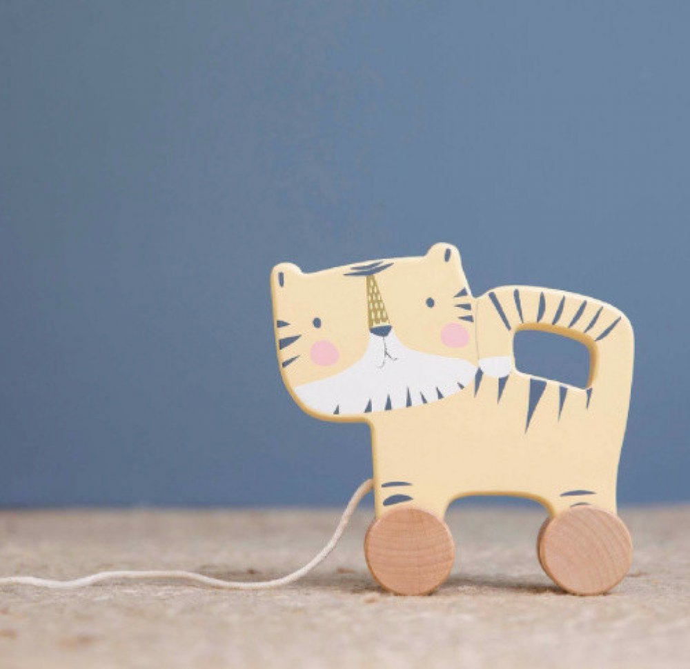 Dřevěný tahací tygr je výborným společníkem pro vaše nejmenší.