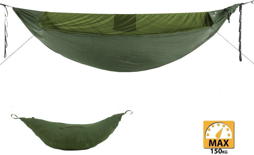 Houpací síť / hamaka TTTM PRO je naším nejnovějším členem týmu a je navržena jako snadno použitelné a vždy připravené řešení pro spaní venku s ochranou proti hmyzu. Zvláštní úsilí bylo věnováno maximalizaci pohodlí a funkčnosti při minimalizaci hmotnosti. Délka 310 cm, kterou nastavíte za méně než minutu, vám poskytne další prostor pro vychutnání si vynikajícího pohodlí i v diagonální poloze.