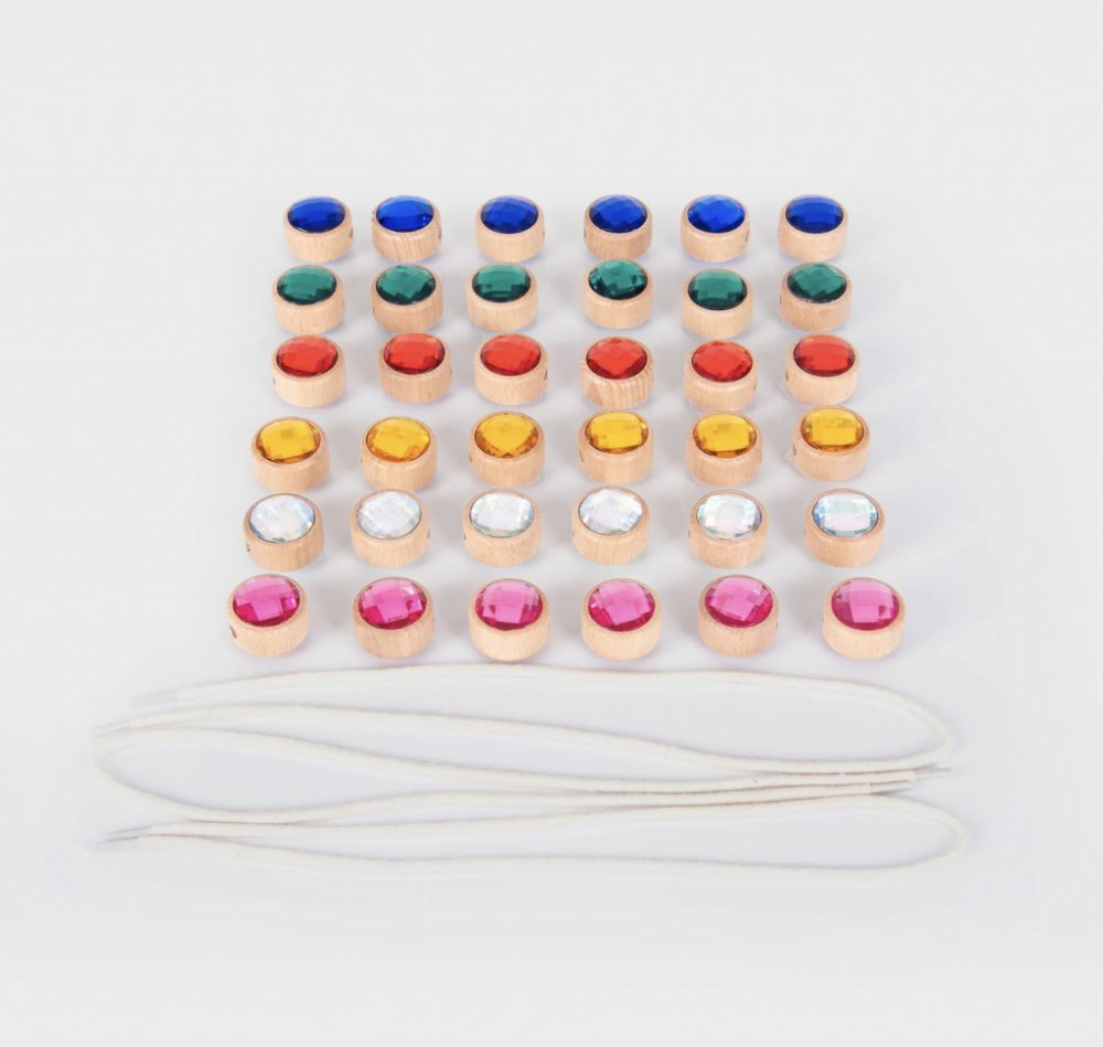 Tato všestranná sada je ideální pro rozvoj koordinace a jemné motoriky, procvičování počítání a třídění a podněcování nápadité hry. Je to také skvělý nástroj pro povzbuzení popisného jazyka a vyprávění příběhů, když děti zkoumají třpytivé navlékací diamanty.