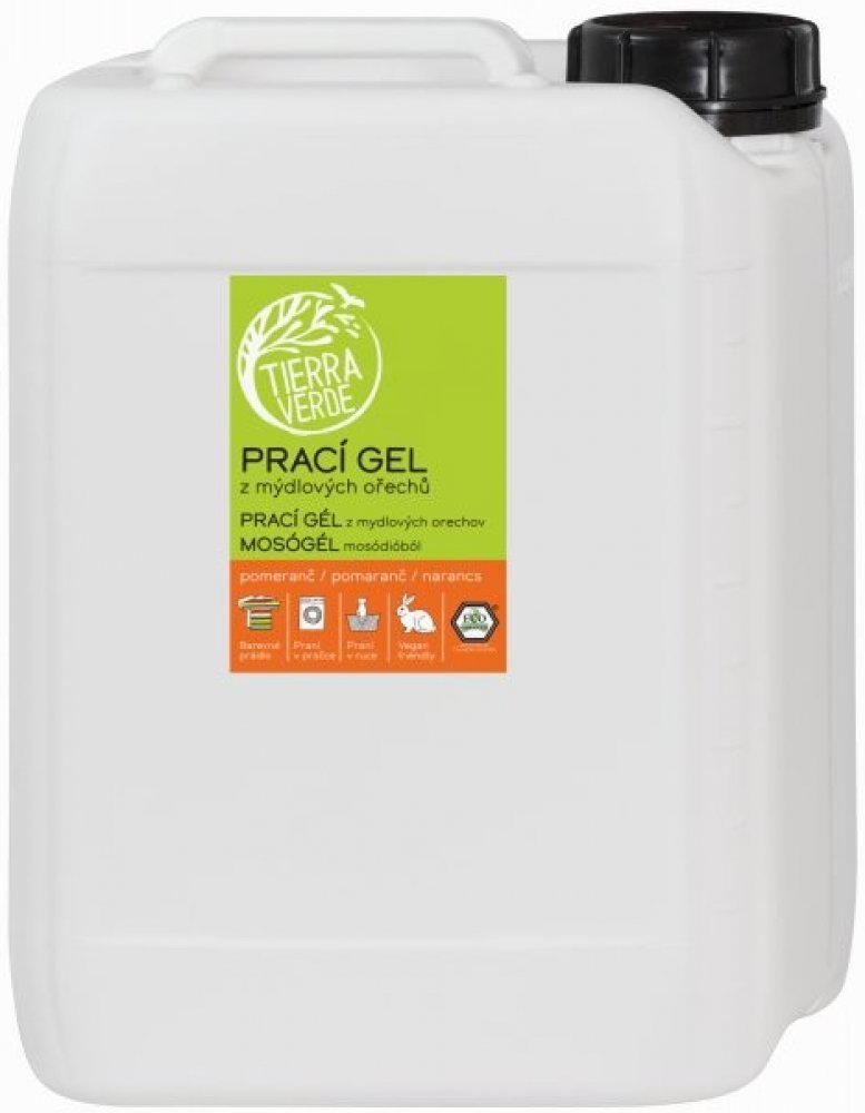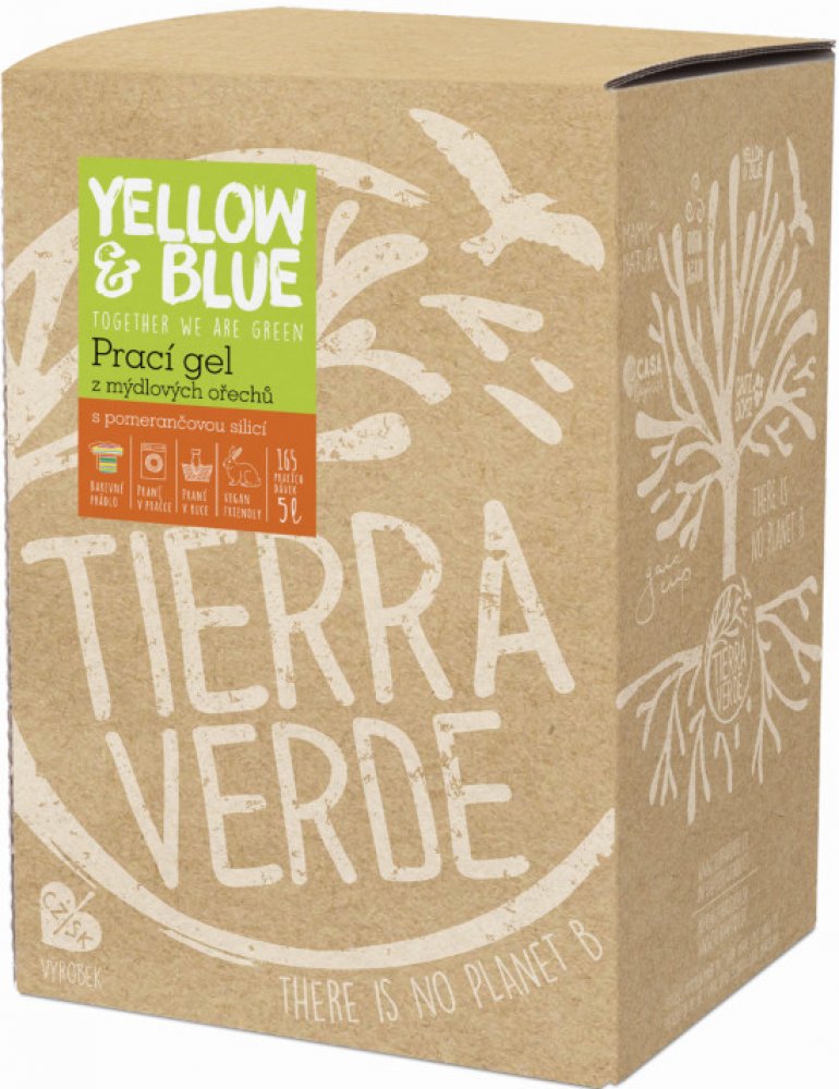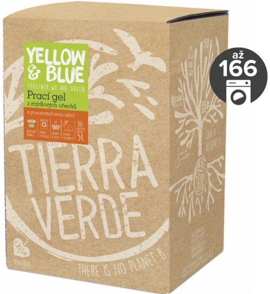 Prací gel z mýdlových ořechů s krásnou přírodní vůní se hodí pro jemné, avšak důkladné a šetrné praní a čištění. Je vhodný především pro praní barevného prádla, které změkčuje přírodním způsobem, takže odpadá nutnost používání avivážních prostředků. Základem je výtažek z mýdlových ořechů v bio kvalitě získaný nejšetrnější metodou extrakce za studena a přírodní éterický olej s pomerančem. Velké balení je ekologičtější i ekonomičtější. Česko-slovenská firma Tierra Verde s.r.o. vyrábí ekologické prostředky pod několika značkami. Její ekologická drogerie nese název Yellow&Blue, kosmetické přípravky Tierra Verde a produkty pro domácí mazlíčky dostaly trefný název Catz&Dogz. Tašky, ručníky a sáčky pro denní použití pak Tierra dováží pod značkou Casa Organica či Mama Natura a pro ženy má také menstruační kalíšky Gaia Cup. Veškerou drogerii vyrábí v Brně a podle nás je nejčistší českou značkou ekodrogerie. To dosvědčuje i uznávaný certifikát Eco Garantie, kterým se pyšní jako jediná v ČR. Dbá přitom jak na blaho spotřebitelů, tak na minimalizaci odpadů a recyklaci. Žádné výrobky ani substance netestuje na zvířatech a v našem sortimentu najdete jen čiště veganské produkty.