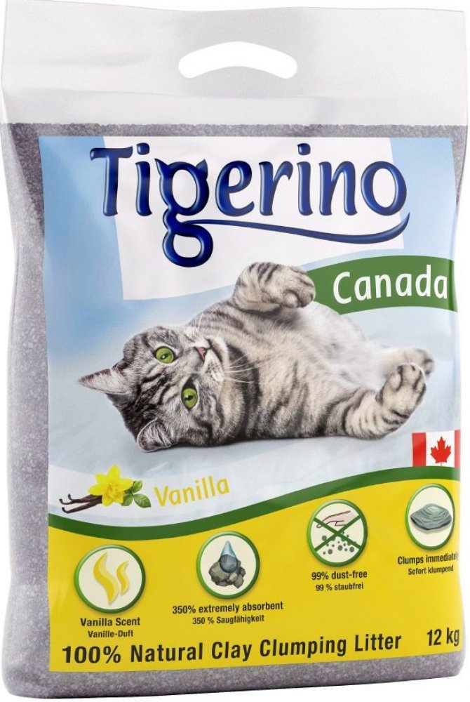 Hrudkující stelivo Tigerino z přírodního granulovaného jílu je vyrobeno v Kanadě a vyznačuje se extrémně rychlou tvrobou hrudek! Díky speciální formuli absorbuje kočkolit Tigerino Canada spolehlivě nepříjemné pachy a šíří příjemnou vanilkovou vůni. Vyznačuje se navíc vysokou savostí - je až 4 x vydatnější než běžná hrudkující steliva. Zrna jsou velmi jemná a prašnost kočkolitu je méně než 1 %! Kočkolit Tigerino Canada s vanilkovou vůní je složen ze 100% čistého přírodního jílu a neobsahuje žádné chemické přísady. Přesvědčte se o kladech hrudkujícího kočkolitu Tigerino Canada - Vanilla: Vanilka - teplá a příjemná vůně Velmi jemný granulovaný přírodní jíl s extra velkou trvanlivostí 4 x trvanlivější a se 4 x vyšší savostí než běžná steliva Ihned hrudkuje a je velmi silný (350 % absorpční síla) 99 % bezprašný (prašnost méně než 1 %) Absorbuje pachy, díky speciální formuli po velmi dlouhou dobu 100% přírodní: složeno z čistého, kvalitního jílu - bez chemických přísad Díky rychlé tvorbě malých hrudek zůstane zbývající stelivo suché. Pravidelné odstraňování hrudek lopatkou udrží hygienickou čistotu.