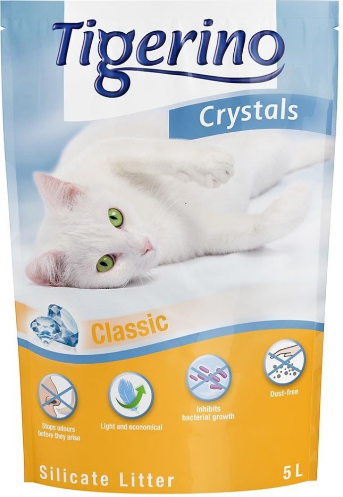 Udělejte si nyní zásoby silikátového kočkolitu Tigerino Crystals 6 x 5 l za výhodnou cenu. Selivo je k dispozici ve variantě Classic bez vůně, s vůní levandule, aloe vera, flower power nebo ve variantě XXL s extra velkou zrnitostí. Kočkolit Tigerino Crystals díky své silikátové struktuře zastaví zápach během několika sekund! Tento kočkolit jedinečným způsobem absorbuje velké množství tekutin a pachů: Silikátový kočkolit Tigerino Crystals dokáže absorbovat téměř stejné množství tekutiny, jako je jeho hmotnost. Moč, pachy a bakterie jsou absorbovány během několika sekund; vlhkost se odpaří, molekuly pachů zůstanou vázány. Nespočet mikropórů kočkolitu Tigerino okamžitě absorbuje vlhkost a udržuje stelivo v suchu. 6 x 5 l Tigerino Crystals: Zastaví zápachy během několika sekund Extrémně savý kočkolit - lehký a úsporný Jednoduché, bezprašné použití Zastavuje růst bakterií Jak dlouho vydrží 5 L Tigerino: 1 kočka: přibližně 25-35 dní 2 kočky: přibližně 15-20 dní 3 kočky: přibližně 8-12 dní