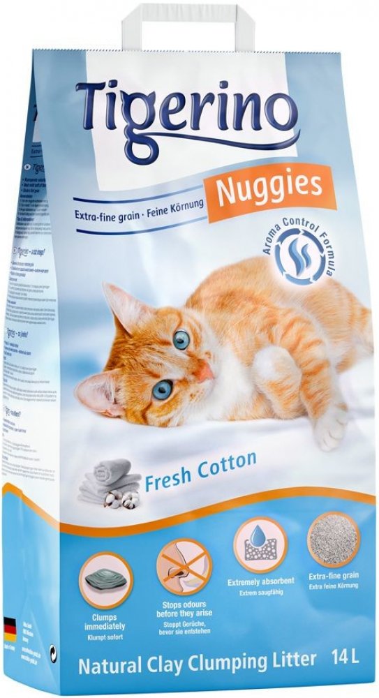 Přednosti hrubozrnného kočkolitu Tigerino Nuggies v krátkém přehledu: hrubá zrna (cca 2-5 mm) okamžitě hrudkuje extrémní savost - 4 x větší výdrž než běžné stelivo 100% přírodní jíl pohlcuje pachy rychle a po dlouhou dobu žádné vynášení zrnek z toalety ideální pro dlouhosrsté kočky vyrobeno v Německu Výhody kočkolitu Tigerino z přírodního jílu jemnozrnný: extra jemná, málo prašná zrna okamžitě tvoří hrudky velmi vysoká savost - užitnost 4 x vyšší než u běžného kočkolitu stelivo ze 100% přírodního jílu pohlcuje zápach: zadrží ho na velmi dlouhou dobu vyrobeno v Německu Využijte naší skvělé nabídky! Pouze po omezenou dobu: nyní při koupi 14 l kočkolitu Tigeriono Nuggies získáte skvělou slevu! Neopomeňte prosím, že se uvedená nabídka vztahuje pouze na produkt č. 1530409.