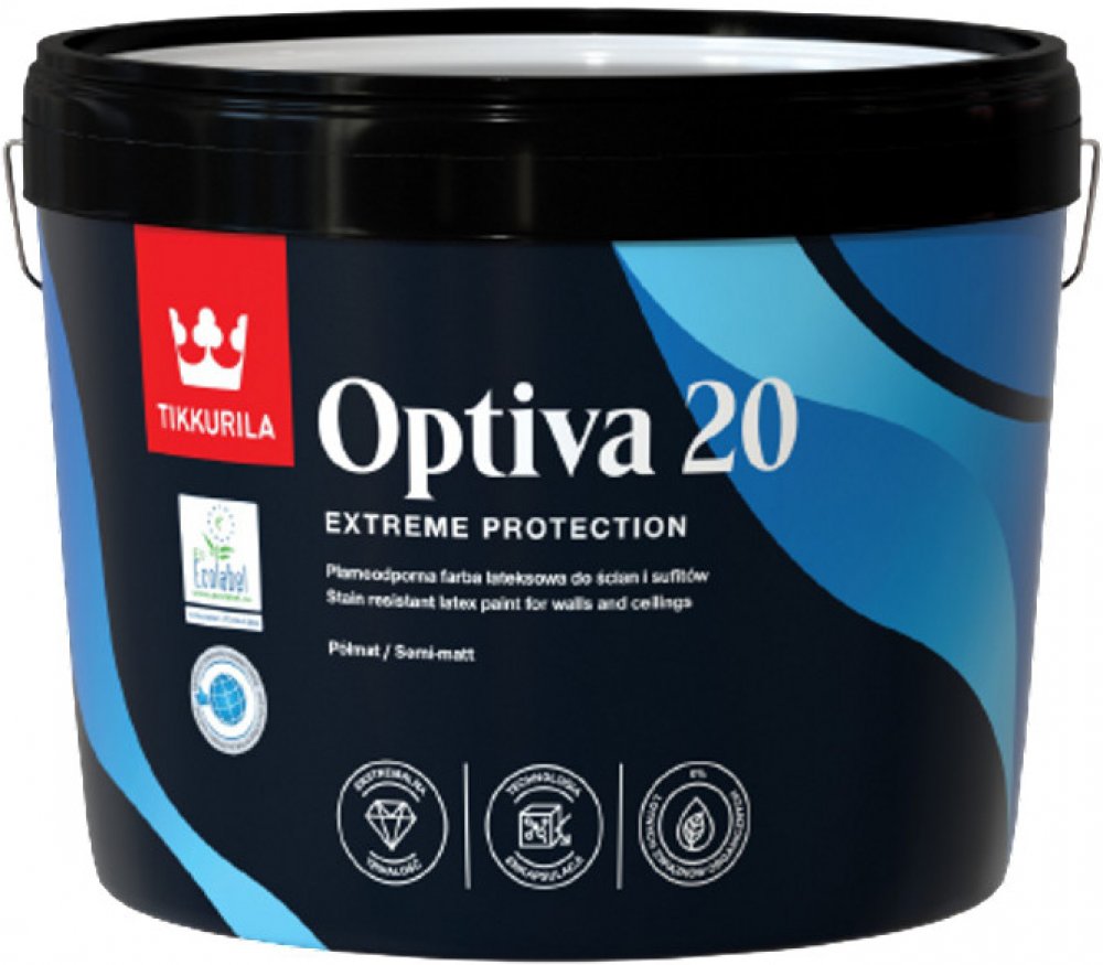 Optiva 20 semi matt je vynikající vodou ředitelná akrylátová barva pro nátěr stěn a stropů v interieru obytných,kancelářských a veřejných budov.
