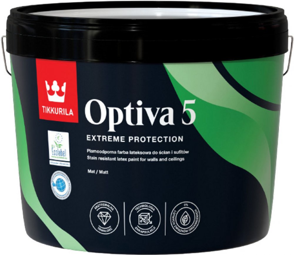 Optiva 5 matt je vynikající vodou ředitelná akrylátová barva pro nátěr stěn a stropů v interieru obytných,kancelářských a veřejných budov.