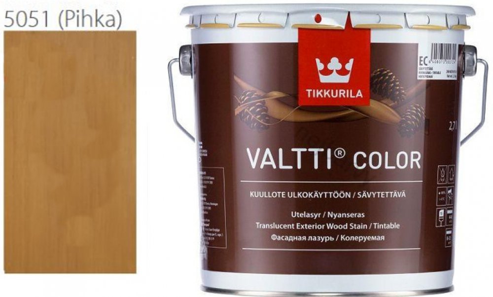 Valtti Color je vhodný na kulatinu, řezané a hoblované dřevěné povrchy, různé dřevěné desky, apod.