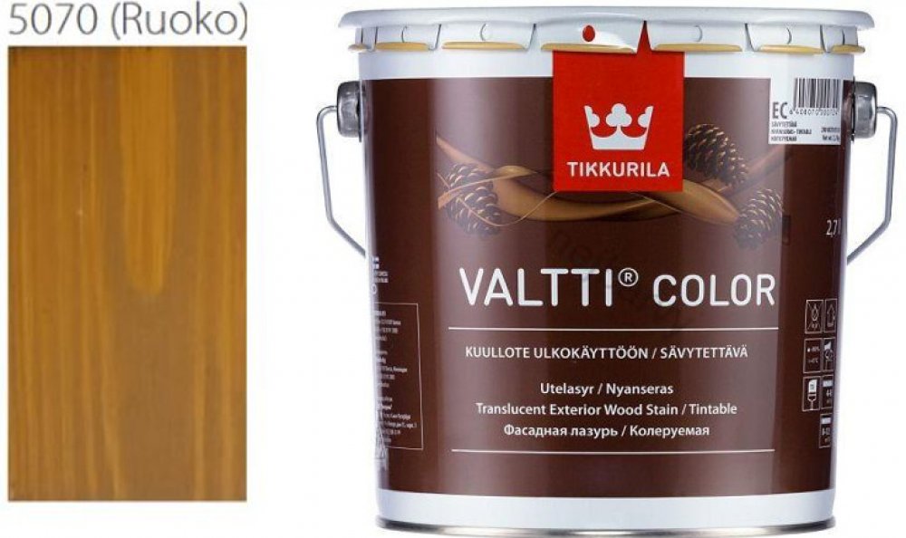 Před použitím promíchejte. Aplikujte dva nátěry VALTTI COLORU ve směru růstu dřeva. Obzvláště si dejte záležet při natírání na letech dřeva. Chraňte rostliny před odstřiky VALTTI COLORU a VALTTI BASE.
