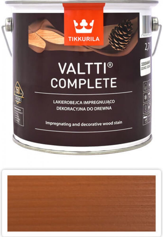 Tikkurila Valtti Complete je špičková matná tenkovrstvá lazura na dřevo určená pro venkovní použití. Využívá trojitý pryskyřičný systém a dvojitý UV absorpční systém, které zajišťují maximální ochranu dřeva před povětrnostními vlivy, UV zářením, vlhkostí a praskáním. Výsledkem je extrémně odolný, dekorativní povrch, který zvýrazní přirozenou krásu dřeva.