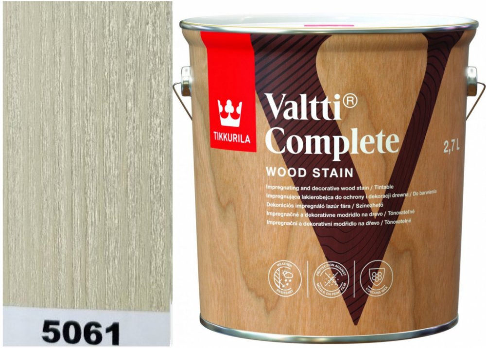Valtti Complete zvyšuje odolnost dřeva vůči plísním, proti vlhkosti, popraskání a olupování. Rovněž zvyšuje odolnost proti poškrábání a otěru díky obsahu vosku.