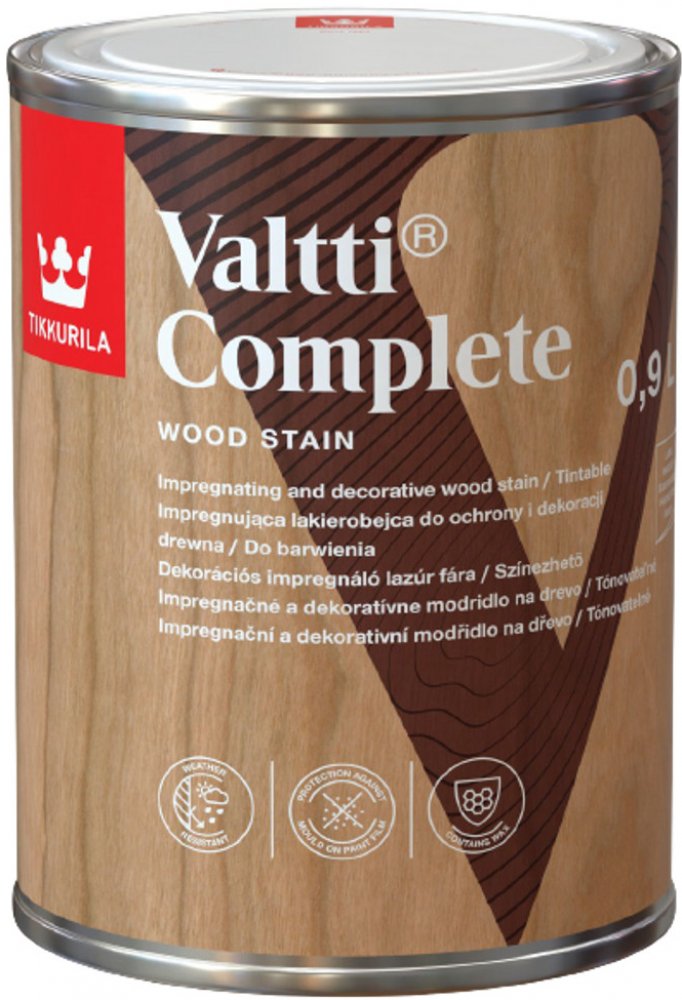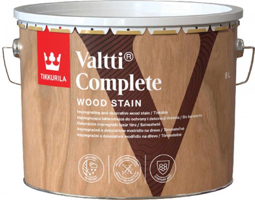 Valtti Complete zvyšuje odolnost dřeva vůči plísním, proti vlhkosti, popraskání a olupování. Rovněž zvyšuje odolnost proti poškrábání a otěru díky obsahu vosku.