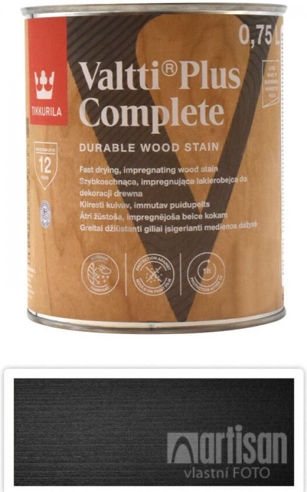 * Rychle schnoucí, vysoce odolná saténová lazura na dřevo v exteriéru. * Valtti Plus Complete je založen na inovativním systému Triple Resin System a poskytuje nejvyšší úroveň odolnosti a ochranu dřevěných povrchů před povětrnostními podmínkami (vlhkost, slunce, proměnlivá teplota). * Valtti Plus Complete navíc obsahuje dvojitý bariérový UV systém, který poskytuje zvýšenou ochranu před účinky UV záření. * Tixotropní vlastnosti zajišťují jednoduchost aplikace, produkt se snadno natírá, nestéká a nekape. * Výrobek je k dispozici v hotových odstínech a také v tónovatelné verzi v široké škále atraktivních a odolných odstínů, které zvyšují přirozenou krásu a strukturu dřeva. * Tikkurila-více než 150 let zkušeností v oblasti ochrany dřeva. ► DOPORUČENÉ POUŽITÍ * Může být použit k natírání hladkých a řezaných tvrdých a měkkých dřevin, průmyslově impregnovaného dřeva, Thermowood a exotického dřeva. * Doporučuje se pro použití na: fasády, kulatinu, zahradní nábytek, altány, okna, dveře, ploty, zábradlí, malou zahradní architekturu. * Pro natírání dřevěných teras, schodů, plošin doporučujeme použít Tikkurila Valtti Terrace Oil Plus, Tikkurila Valtti Wood Oil Akva, Tikkurila Valtti Wood Oil. ► VLASTNOSTI VÝROBKU * Ochrana s extrémně dlouhou životností – až do 10 let. * Saténový povrch se zvýšenou odolností vůči plísním. * Triple Resin System-nejvyšší odolnost vůči povětrnostním podmínkám díky 3 pryskyřičným směsím. * Ochrana dřeva před praskáním a loupáním. * Schopnost odpuzovat vodu a vlhkost. * Vytváří mimořádně trvanlivý nátěr díky efektivní schopnosti impregnovat a přilnout k povrchu. * Zvýšení životnosti dřeva díky schopnosti utěsnit a vyplnit mikrotrhliny. * Zvýšená odolnost vůči poškrábání a oděru. ► Vysoká barevná trvanlivost. * Dvojitý bariérový UV systém-synergie dvou UV filtrů zaručuje nejvyšší odolnost vůči destruktivnímu UV záření. * Stabilní a jednotná barva. * Zvýšená ochrana před ztrátou lesku, křídováním a praskáním. ► Rychleschnouci receptura. * Okamžitá konzervace dřeva po 1 hodině od aplikace (rovněž v případě deště). * Natírání do 1 dne: aplikace dalšího nátěru po 2 hodinách. ► Úspora nákladů na natírání. * Extrémně vysoké pokrytí-až 18 m²/l.