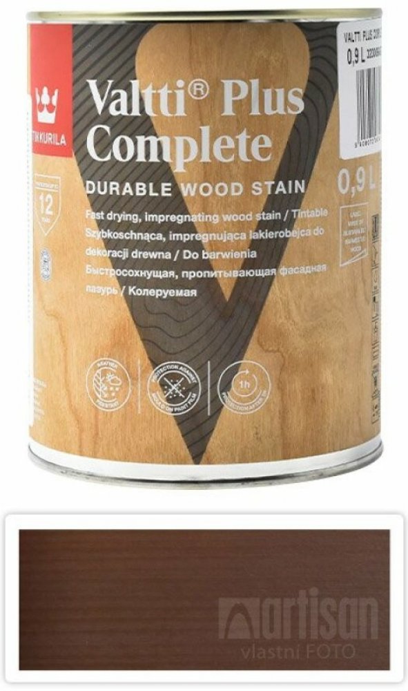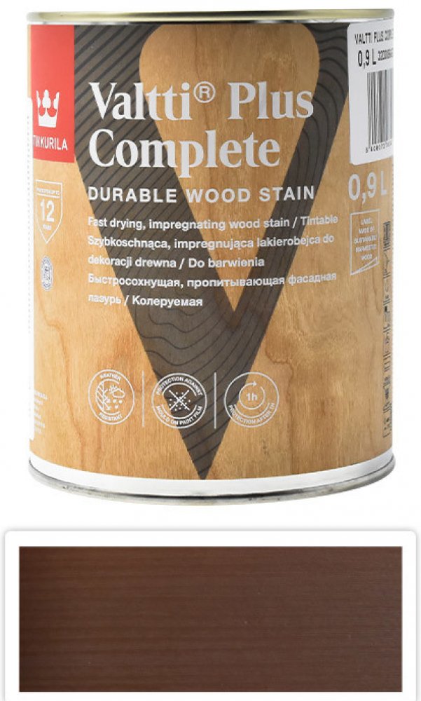 TIKKURILA Valtti Plus Complete je matná tenkovrstvá vodou ředitelná a vysoce odolná lazura na dřevo v exteriéru. Je rychle schnoucí a chrání proti plísni. Poskytuje zvýšenou ochranu proti UV záření. Lazura je tixotropní - což znamená, že při natírání nekape a nestéká.