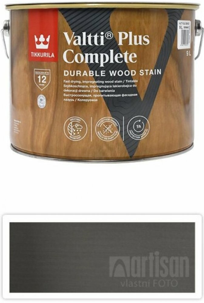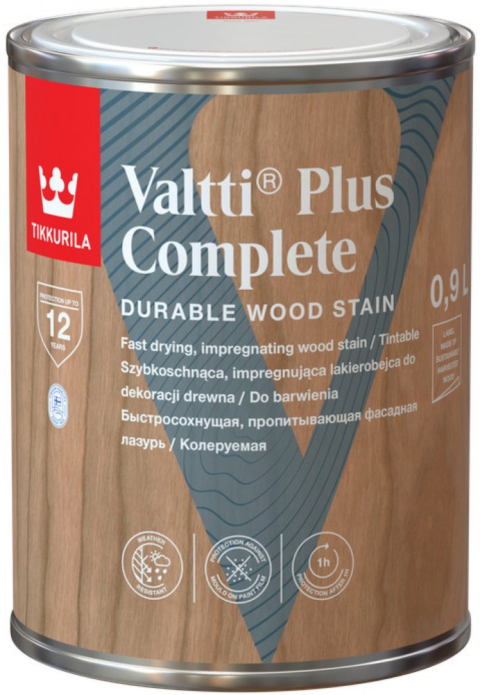 TIKKURILA Valtti Plus Complete je matná tenkovrstvá vodou ředitelná a vysoce odolná lazura na dřevo v exteriéru. Je rychle schnoucí a chrání proti plísni. Poskytuje zvýšenou ochranu proti UV záření. Lazura je tixotropní - což znamená, že při natírání nekape a nestéká.