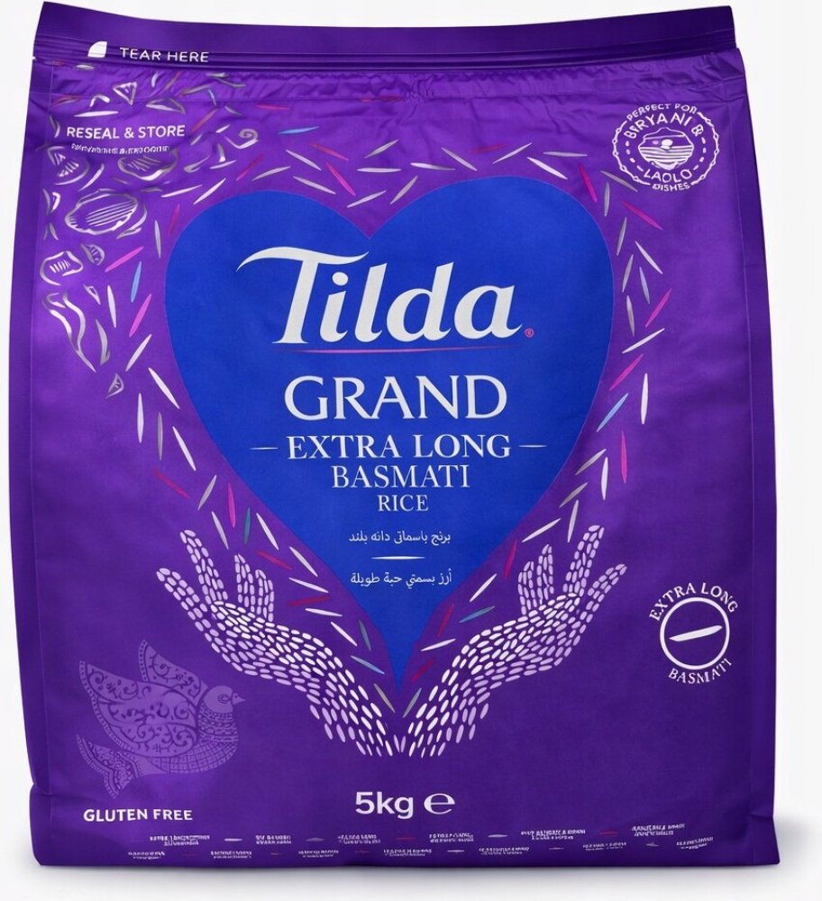 Tento jedinečný typ rýže je známý svou lahodnou, jemnou chutí, měkkou a nadýchanou strukturou. Tato čistá basmati rýže z Tildy se pěstuje a sklízí na úpatí Himálaje. Čistá voda z Himalájí dává dlouhozrnné rýži její jedinečnou chuť. Tilda Basmati rýže je vysoce kvalitní a ideální pro všechna orientální jídla nebo jako doprovod k jakémukoli jídlu.