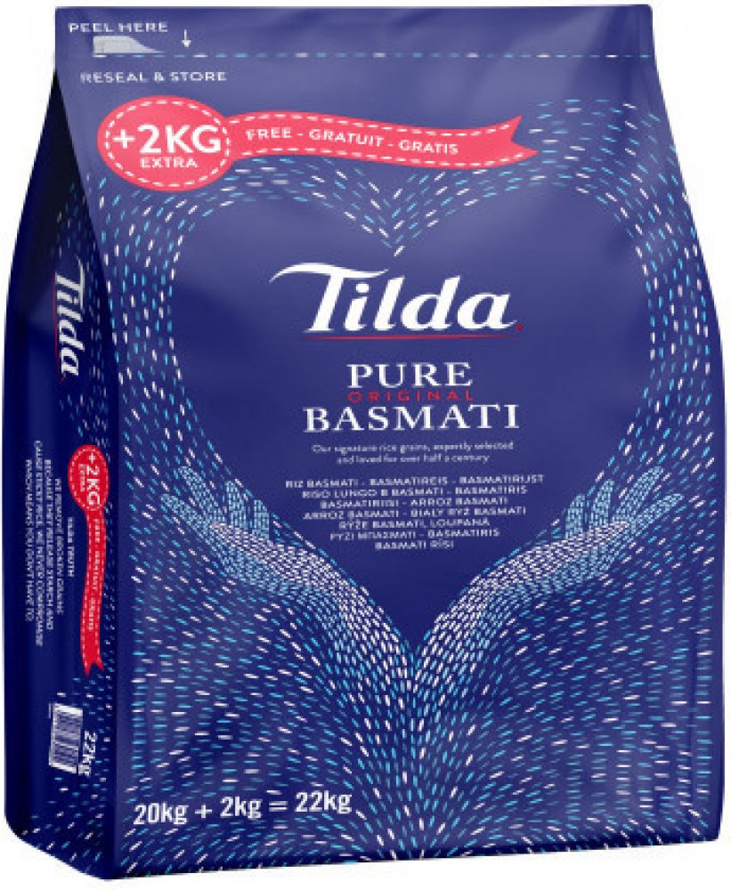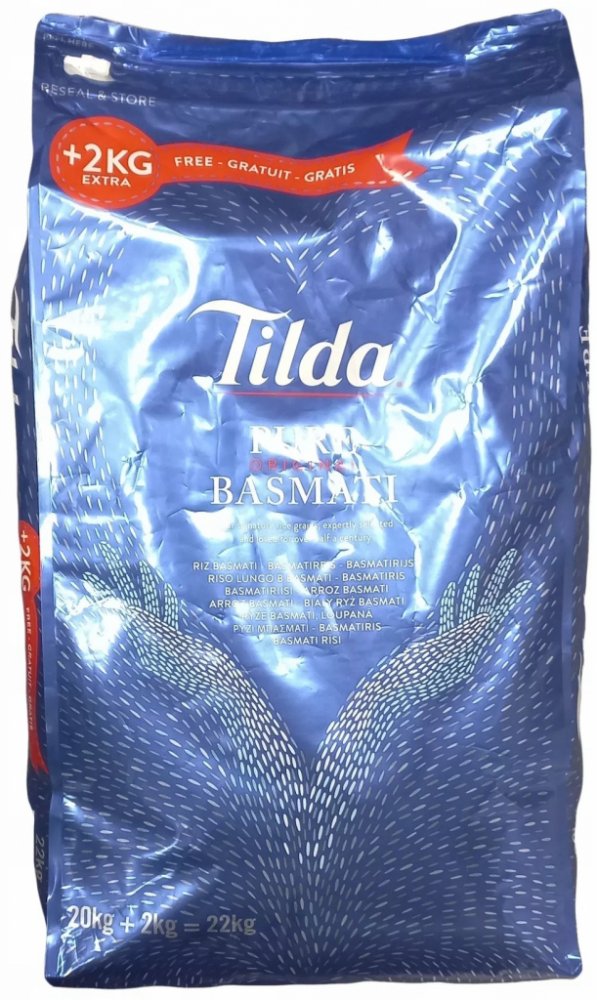 Rýže Basmati Tilda je renomovaný druh rýže, který nabízí společnost Tilda. Je známý svými dlouhými, štíhlými zrny, jemnou texturou a charakteristickým aroma. Rýže Basmati Tilda je pečlivě získávána z podhůří Himalájí, kde jedinečné půdní a klimatické podmínky přispívají k její výjimečné kvalitě. Rýže stárne po určitou dobu, aby se zvýšila její chuť a zajistilo se, že se vaří nadýchaně a zachovává se oddělenost zrn. Jedná se o všestrannou rýži, kterou lze použít v různých pokrmech, od biryanií a pilafů až po stir-fry a saláty. Rýže Basmati Tilda je široce oceňována pro svou vysokou kvalitu a je preferovanou volbou pro ty, kteří hledají autentický a aromatický zážitek s rýží.