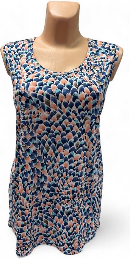 Letní top v drobném vzoru- vhodné do teplých letních dnů. Úplet z polyesteru.