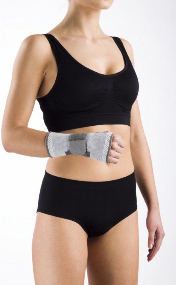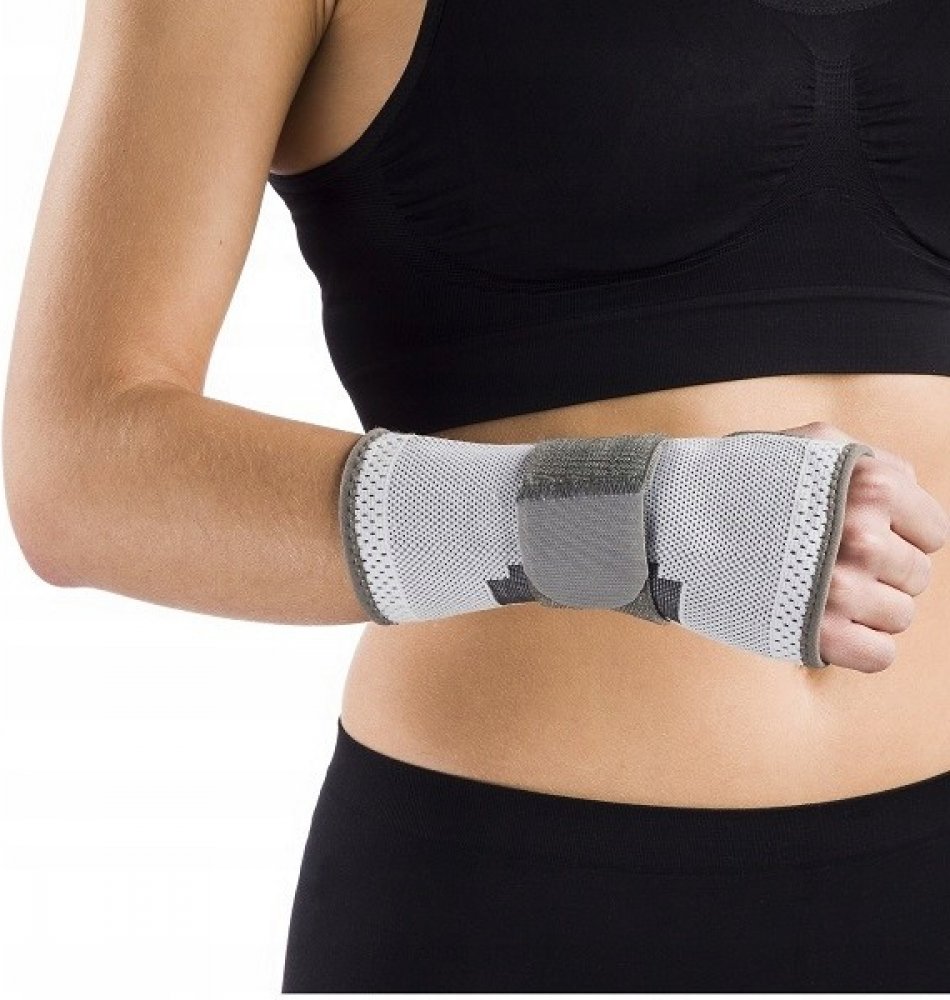 Pružný výztužný pás stabilizaci zápěstí ze strany dlaně.